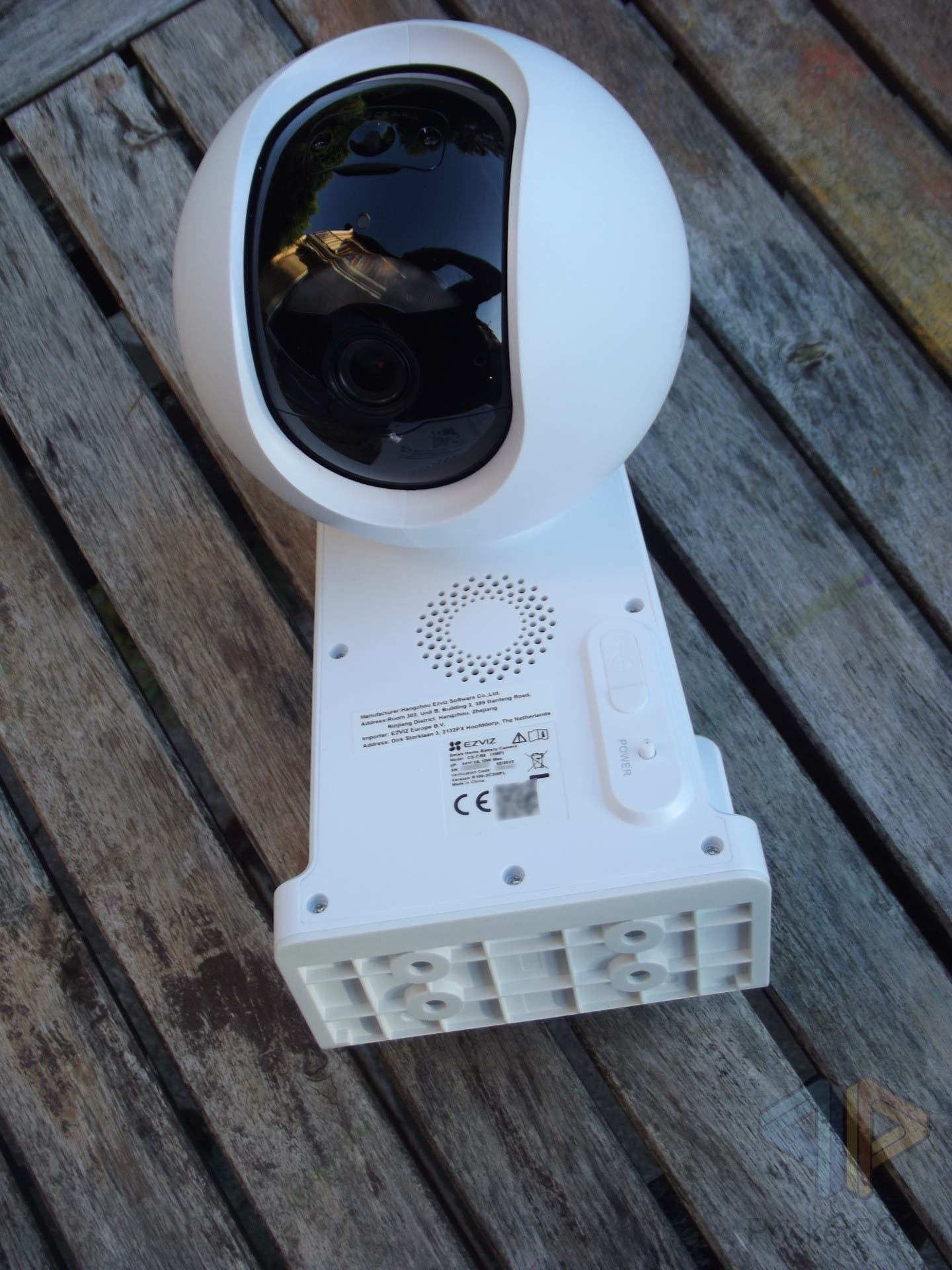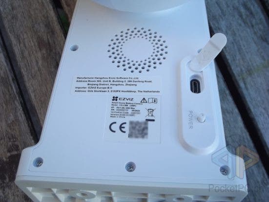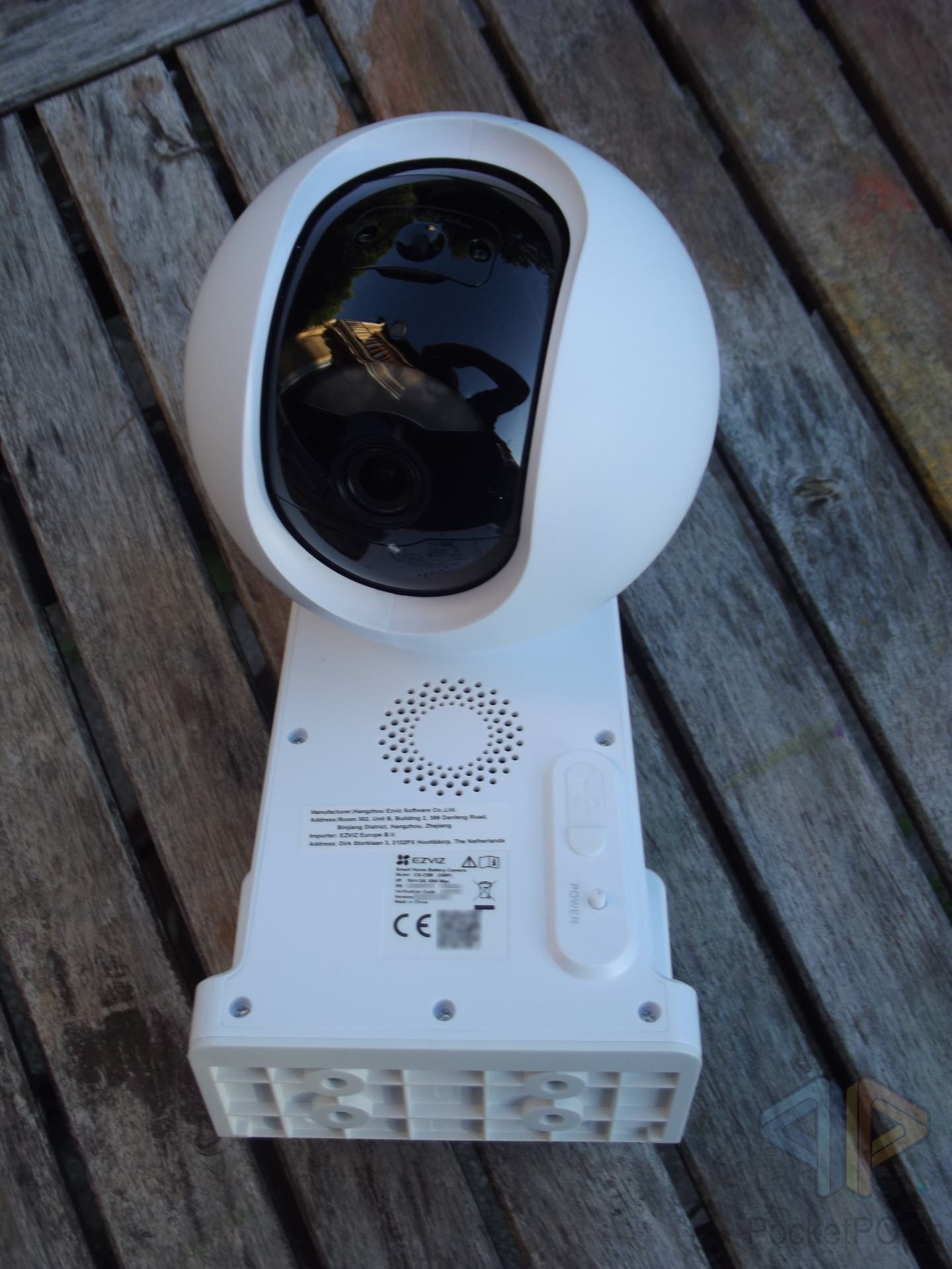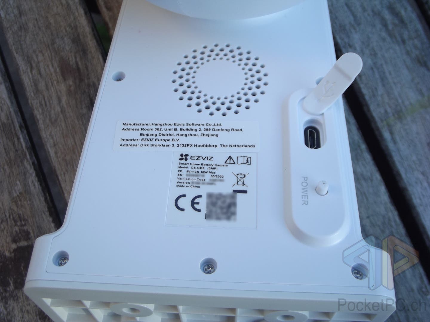 Die EZVIZ CB8 Kamera lässt sich allein im 2.4 GHz-Frequenzband mit einem WLAN verbinden und benötigt mindestens 4 Mbps an Bandbreite. Die IP-Cam ist für den Ausseneinsatz geeignet und kann zwischen -20 °C und 50 °C und bis zu 95 % Luftfeuchtigkeit benutzt werden. Im Inneren ist ein 10400 mAh Akku verbaut, der im Hals der Halterung mit einem unter einer Gummiabdeckung verborgenen microUSB-Anschluss mit 5 V und 1 A aufgeladen wird. Dort befindet sich auch der Power-Knopf sowie ein Lautsprecher und ein Mikrofon.