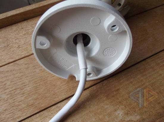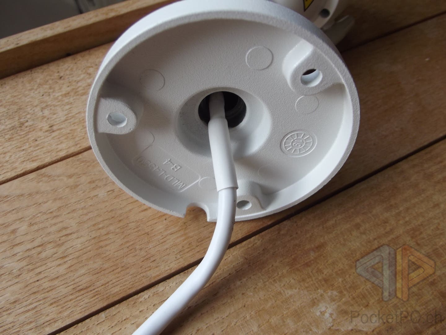 Die C3X von EZVIZ ist nach Schutzklasse IP67 gegen Wasser und Staub geschützt. Die Kamera selbst ist 72 x 72 x 150 mm gross und wiegt 425 Gramm. Am annähernd kugelförmigen Gehäuse ist rückseitig eine klassische Halterung mit Überwurfmutter zum Feststellen angebracht. Aus dem Sockel der Halterung ragt mittig das 40 cm lange Kabel mit Ethernet-Anschluss in Form einer RJ45-Kupplung sowie einem Stromanschluss für das Netzteil.