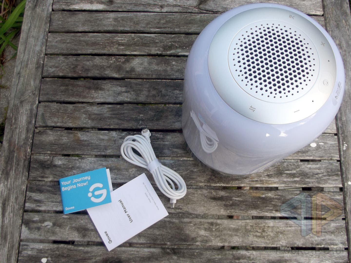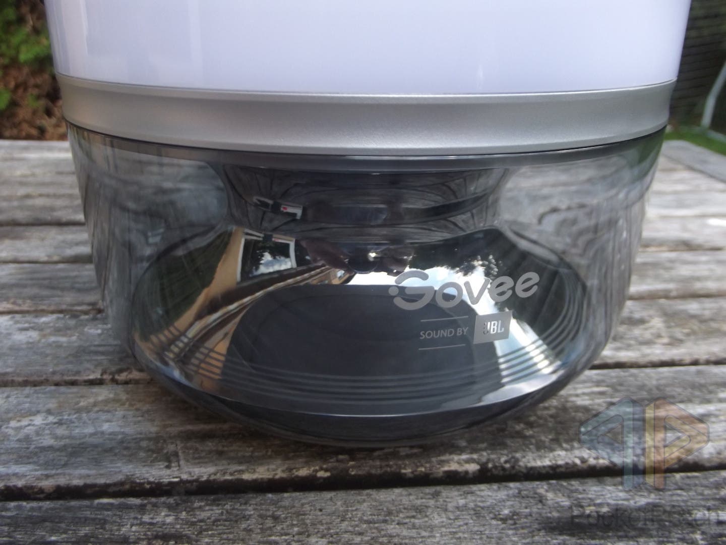 Die Lampevon Govee ist zylindrisch gestaltet und besteht aus zwei Abschnitten. Der obere Teil der 34 cm hohen Tischlampe, die etwas an ein Steampunk Prop erinnert, ist von einer Milchglas-Hülle geprägt. Auf der Oberseite kreisrunden Zylinders mit einem Durchmesser von 18.9 cm ist ein silberner Deckel mit dem JBL Lautsprecher von 2.5 Zoll 500cc, fünf berührungsempfindlichen Tasten für die Bedienung sowie eine Status-LED und ein Mikrofon zu finden. Sie Tablelamp 2 Pro von Govee ist also insgesamt 18.9 x 18.9x 34 cm gross und wiegt 1775 Gramm.
