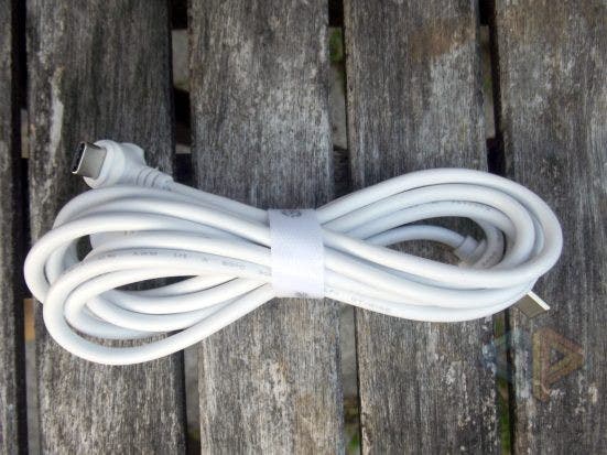 Die Govee Table Lamp 2 Pro kommt mit einer mehrsprachigen Kurzanleitung, darunter auch Deutsch, Französisch und Italienisch, einem Faltblatt zum Produktsortiment von Govee sowie einem zwei Meter langen, weissen USB-C-Kabel mit einem angewinkelten Stecker. Mehr ist nicht im Karton. Ein USB-C-Netzeil sucht man also vergebens. Das macht aber nichts, da das Gerät mit herkömmlichen USB-Steckernetzteilen aufgeladen und betrieben werden kann. Mehr als 35 Watt Ausgangsleistung sind nicht erforderlich.