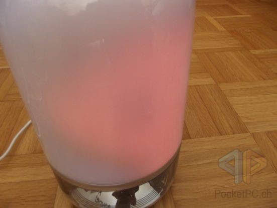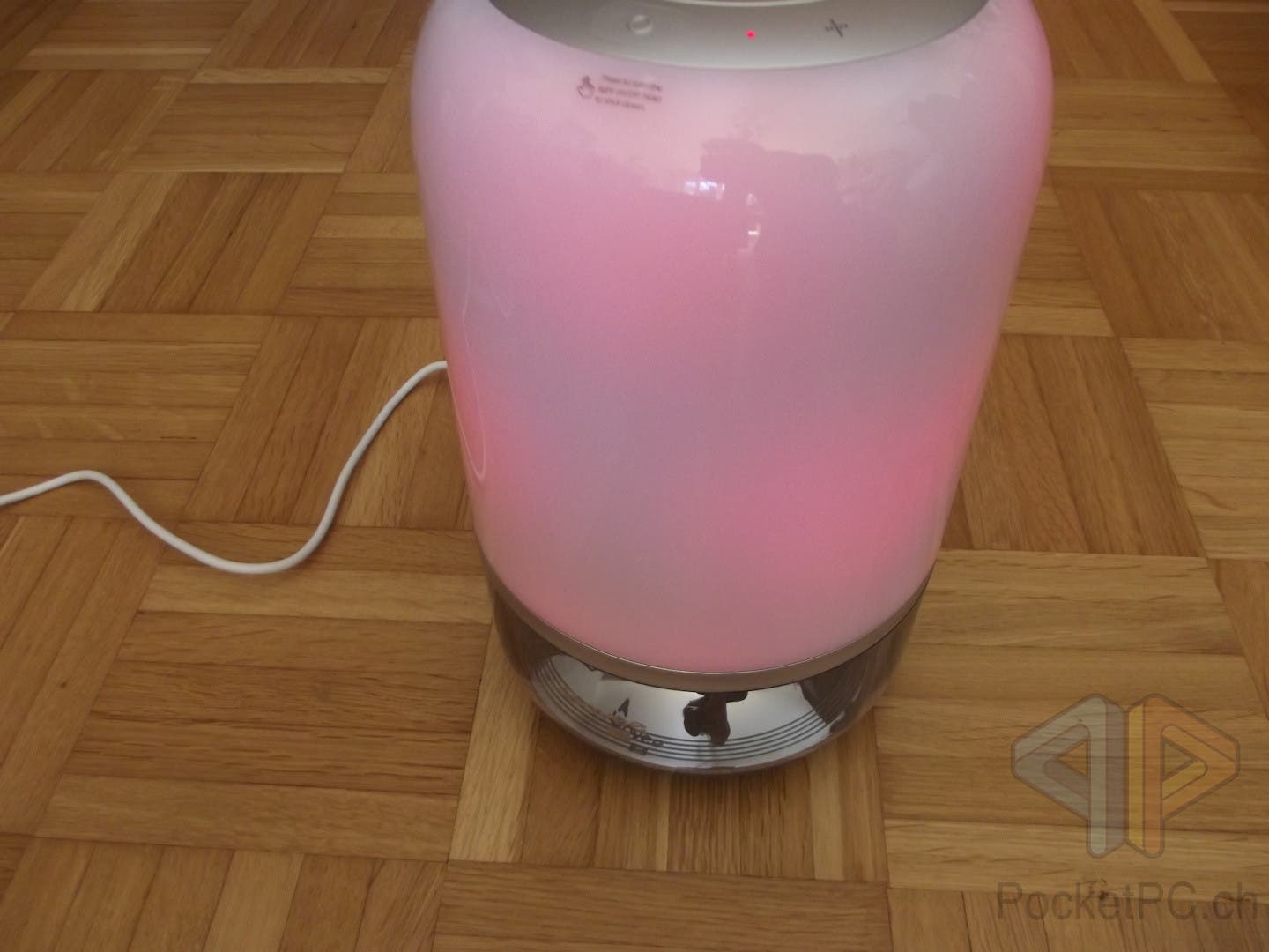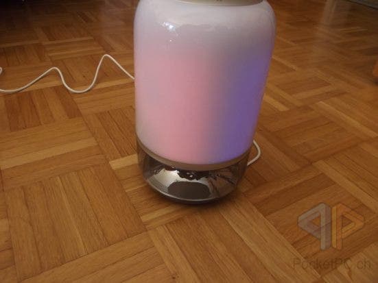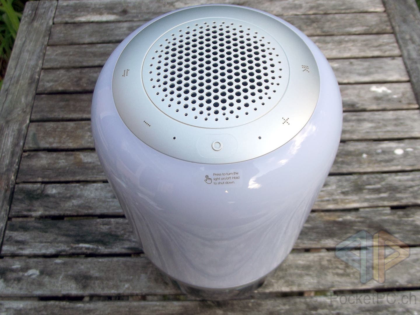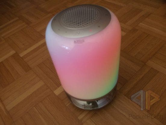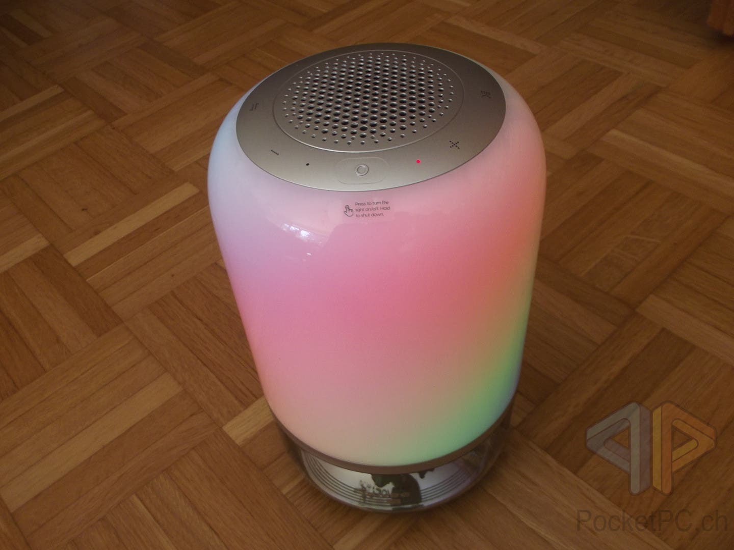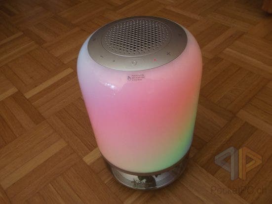 Die beiden Bereiche, der weisse obere Teil und der chromsilberne Sockel, lassen sich unabhängig voneinander per App konfigurieren in Sachen Lichteffekte.