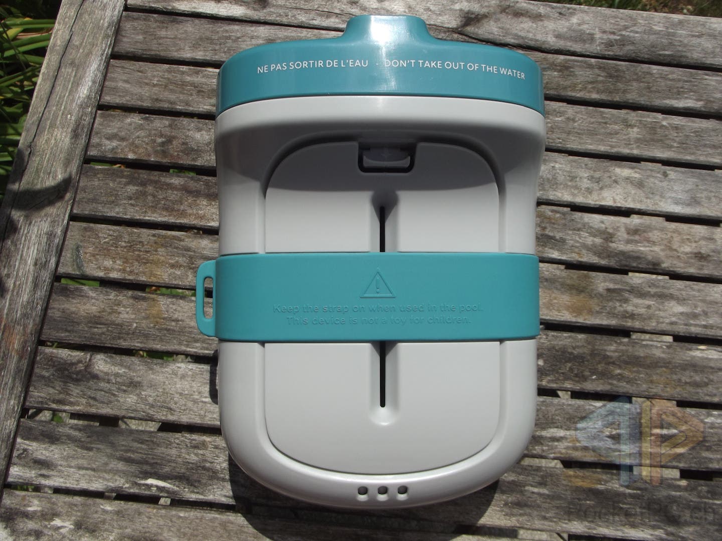 Im Inneren sind zwei Motoren verbaut, die den Chlorgehalt des Pools automatisch verwalten helfen. Der EcoTab kann bei Bedarf, der durch den EcO Sensor von iopool ermittelt wird, die Chlorverteilung automatisch regulieren. Vorne und Hinten sind Öffnungen zu finden, die in den Klappen des Mittelteils verbaut sind und von einem starken, breiten Gummiband gehalten werden.