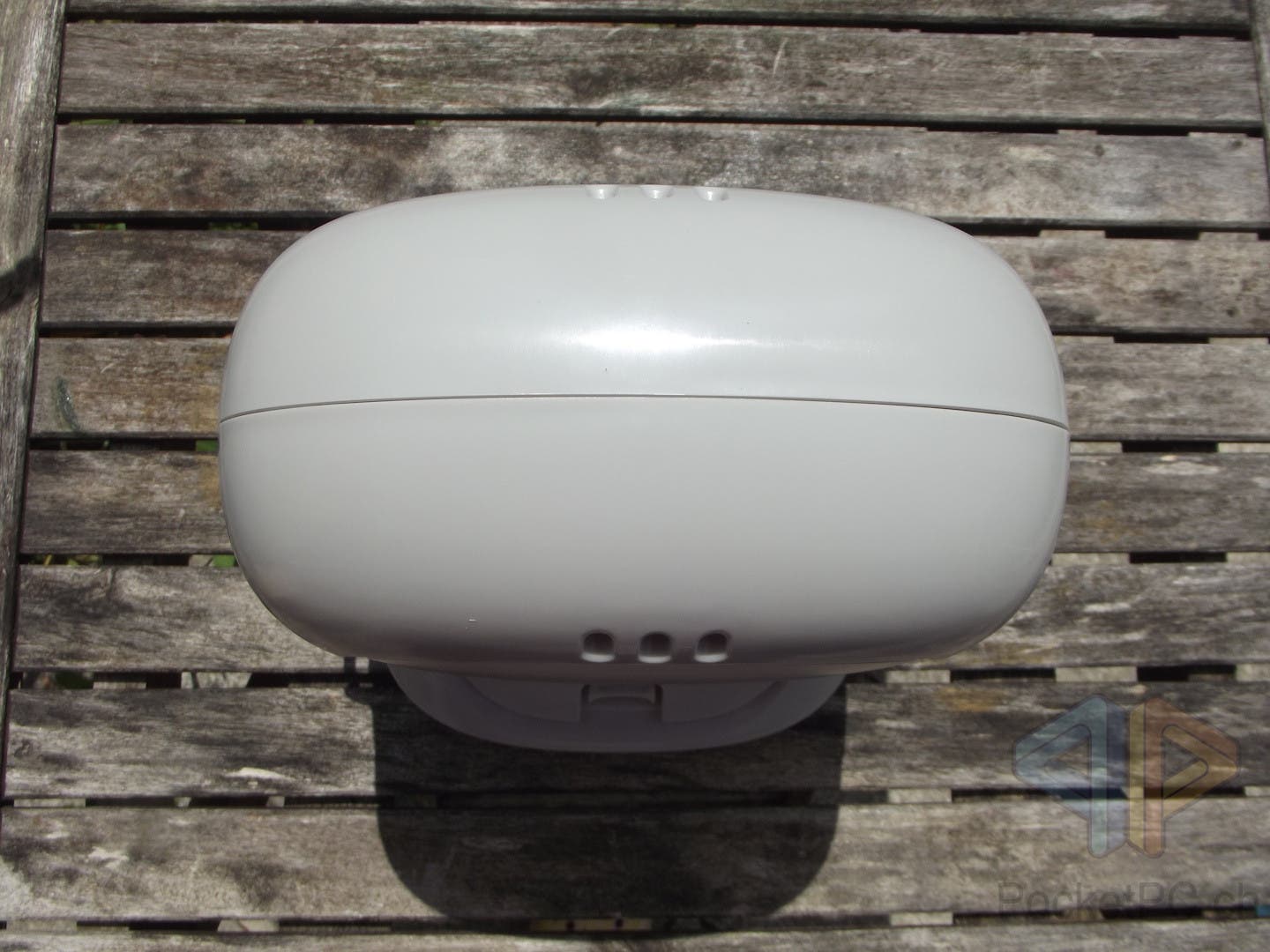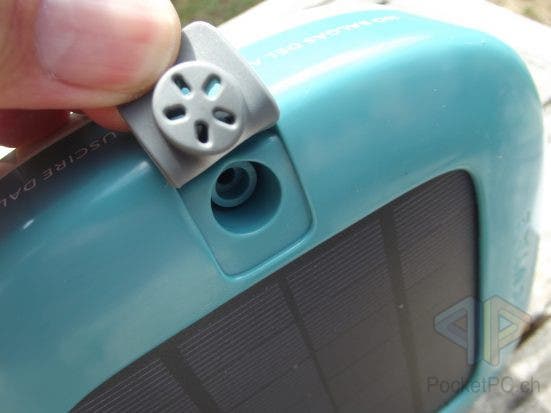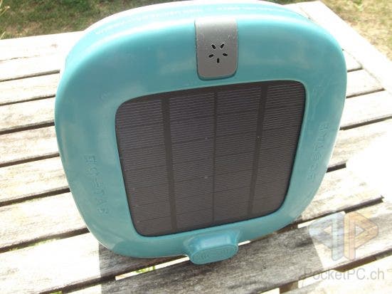Auf der Oberseite ist eine 12 x 12 cm grosses Solarpanel zu finden, mit dem das Gadget mit Strom versorgt wird. Ein Aufladen mittels Kabel ist nicht notwendig und auch nicht möglich.