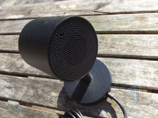 Die Innenkamera kommt zusammen mit einem microUSB-Netzteil, das vormontiert im Kamerafuss steckt und Montagematerial in Form von zwei Dübeln und Schrauben. Warum kein USB-C-Anschluss? Das haben wir uns bei der Produktvorstellung am 12. Februar auch gefragt. Es ging Netatmo bei der Innenkamera darum, nochmals Platz zu sparen im Gehäuse, denn der Stromanschluss ist im Ständer verbaut. Doch dazu gleich mehr. Weiter enthalten sind zwei Sticker zum Hinweisen auf die Videoüberwachung, eine Sicherheits- und Konformitätsbroschüre in mehreren Sprachen sowie ein Kärtchen mit dem QR-Code, um die Home + Security App von Netatmo herunterzuladen und den Apple HomeKit Setup-Code. Eine microSD-Karte mit 8 GB Speicherplatz ist bereits in der Kamera eingelegt. Das Netzteil liefert 5 V mit bis zu 2 A und kommt mit einem 240 cm langen Kabel daher.