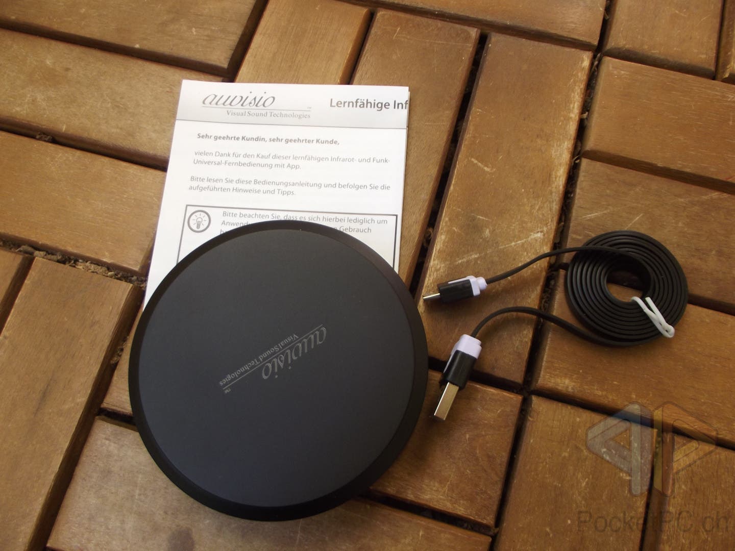 Die WLAN-Fernbedienung wird geliefert mit einem 1 m langen, flachen microUSB-Kabel und einer deutschsprachigen Kurzanleitung.