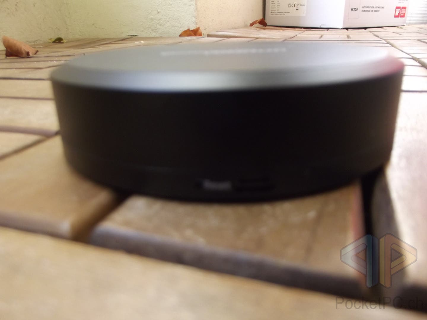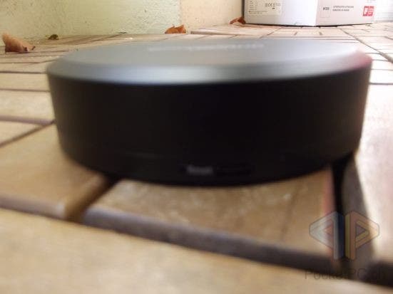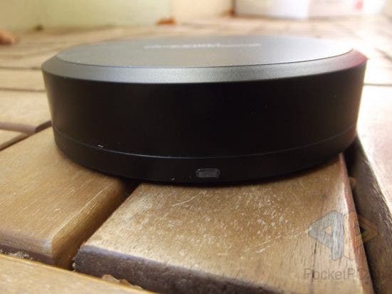 Das Smart Home Gadget ist eine Scheibe mit 100 mm im Durchmesser und 22 mm Höhe. Die schwarze Kunststoffbox wiegt 150 Gramm und ist auf der Vorderseite mit einem Infrarot-Transmitter ausgestattet. Die Rückseite birgt den microUSB-Anschluss zur Stromversorgung.