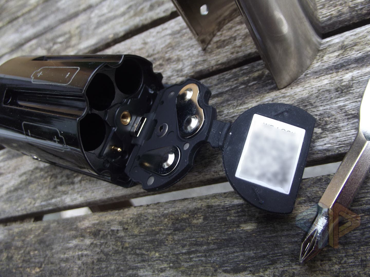 Mittig ist eine Kreuzschlitzschraube zu finden, die den Deckel des Batteriefachs sichert.
