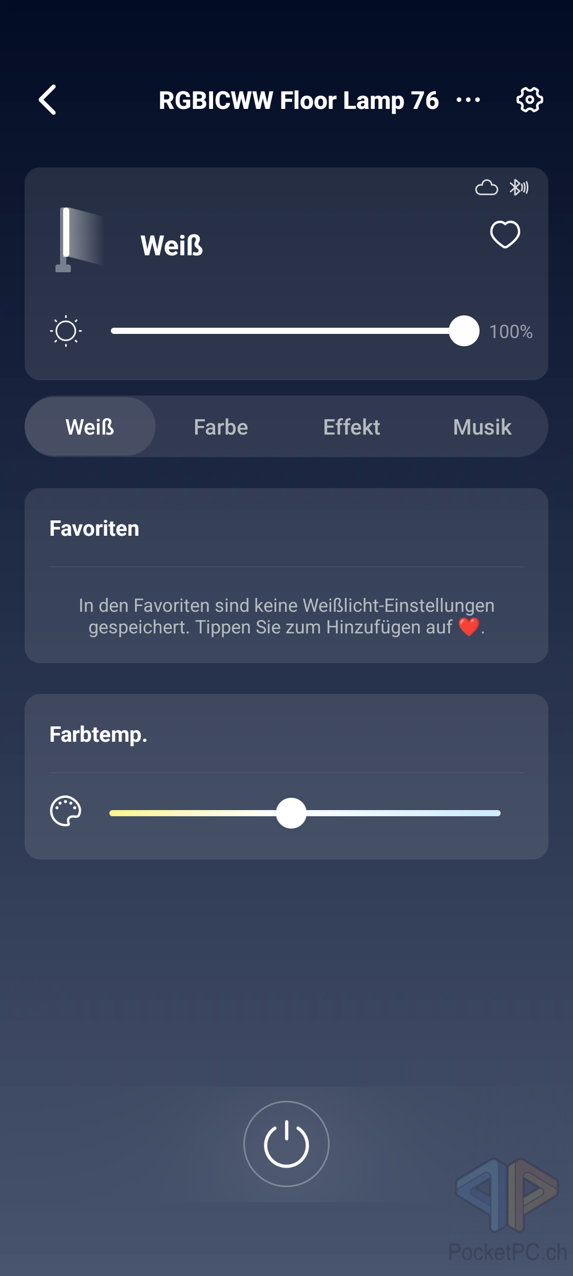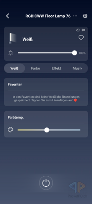 Weiter sind die weissen Beleuchtungsmodi der smarten SwichBot Stehlampe durchaus auch sehenswert. Ein warmweisses Licht von 2700 K, das fast schon gelblich aussieht, oder bis zu bläulich-grellem 6700 K, dass schon sehr kaltes Licht wirft, ist hiermit problemlos möglich. Da hierbei nicht etwa Rot, Grün und Blau zusammengemischt werden, ist der Farbeindruck ungetrübt. Auch ein Flackern ist nicht zu sehen.