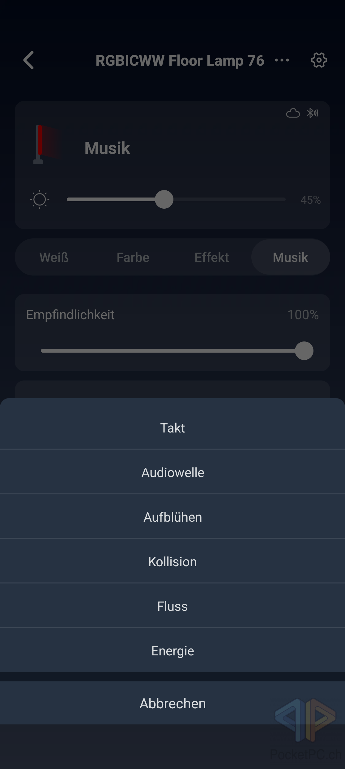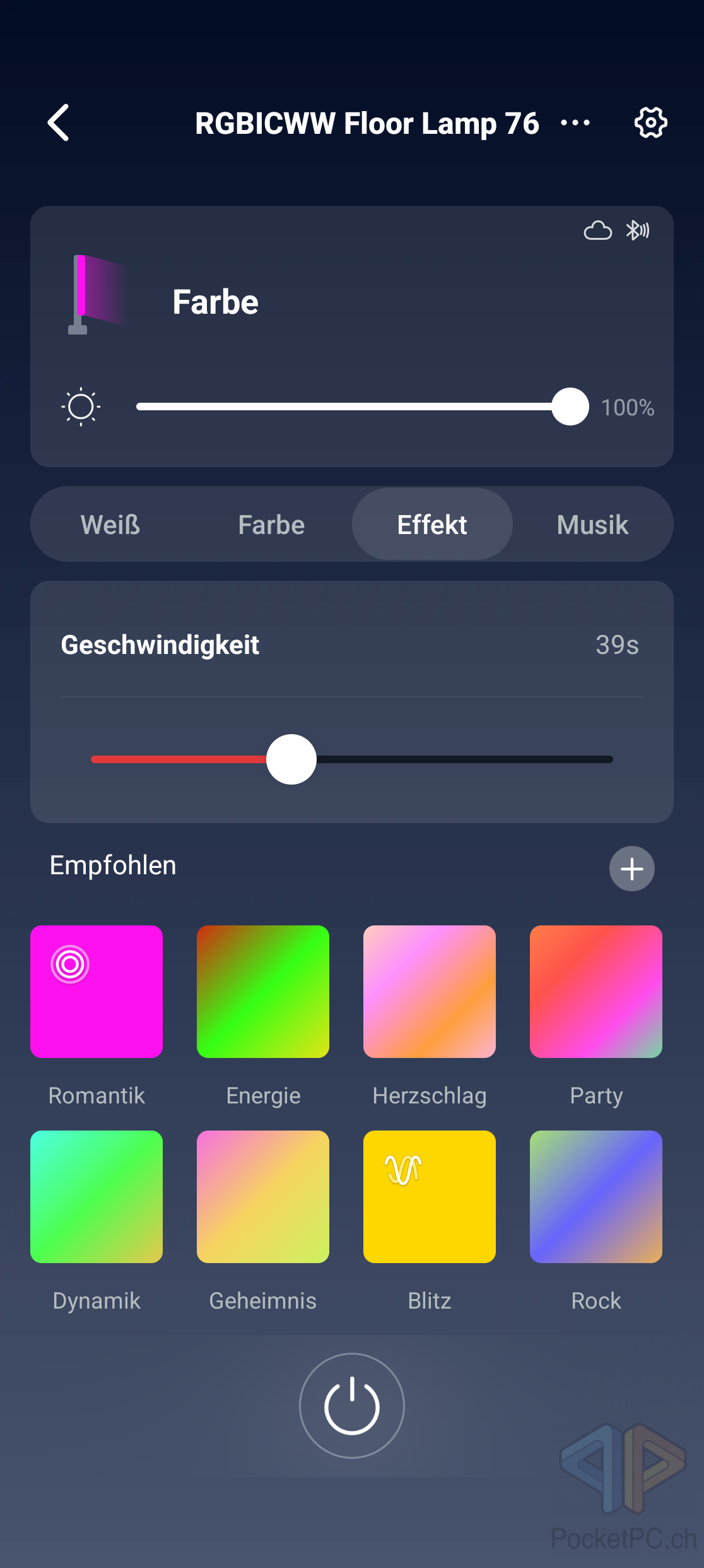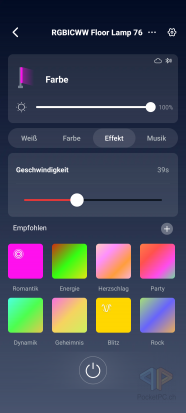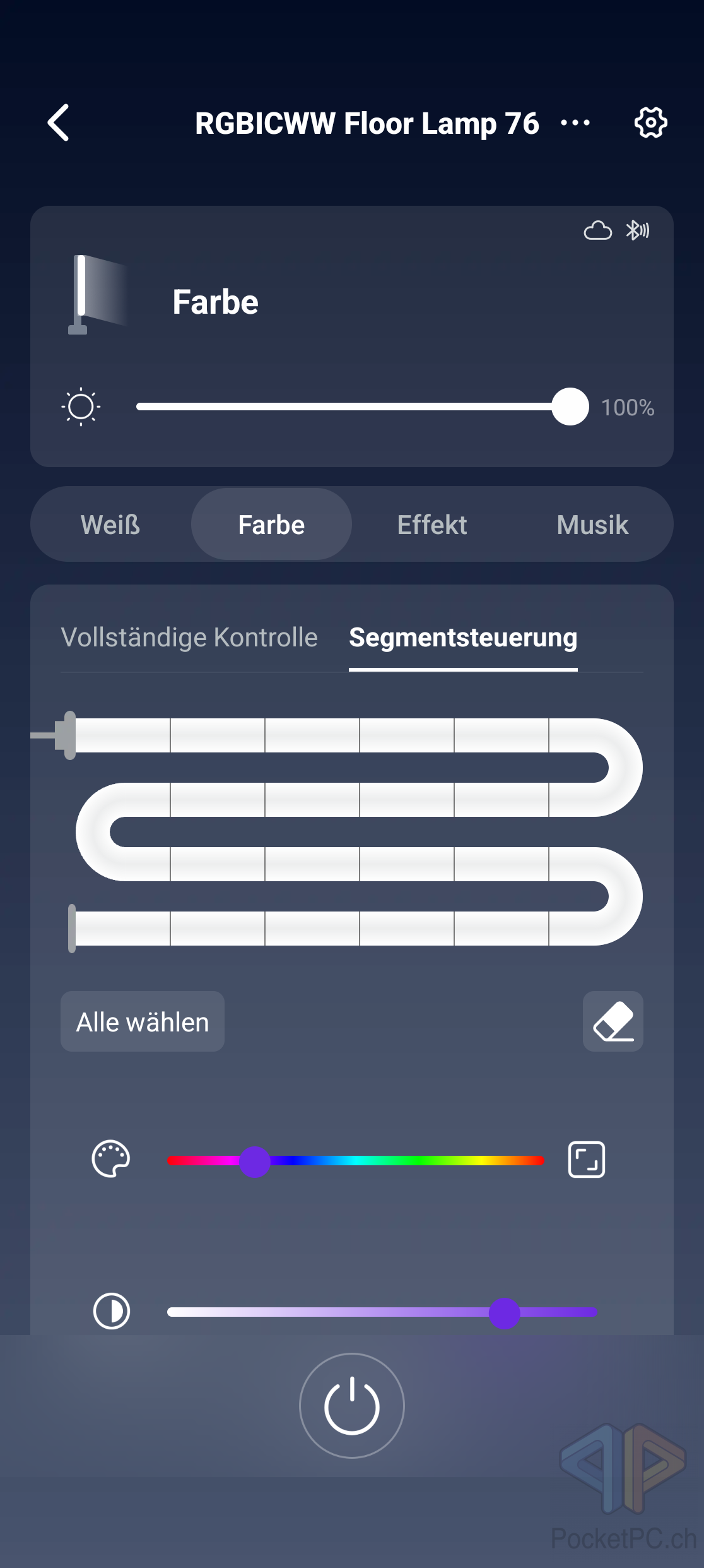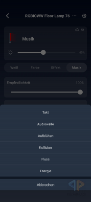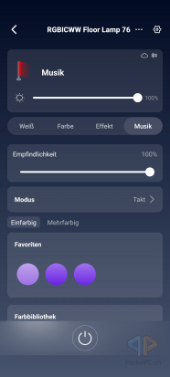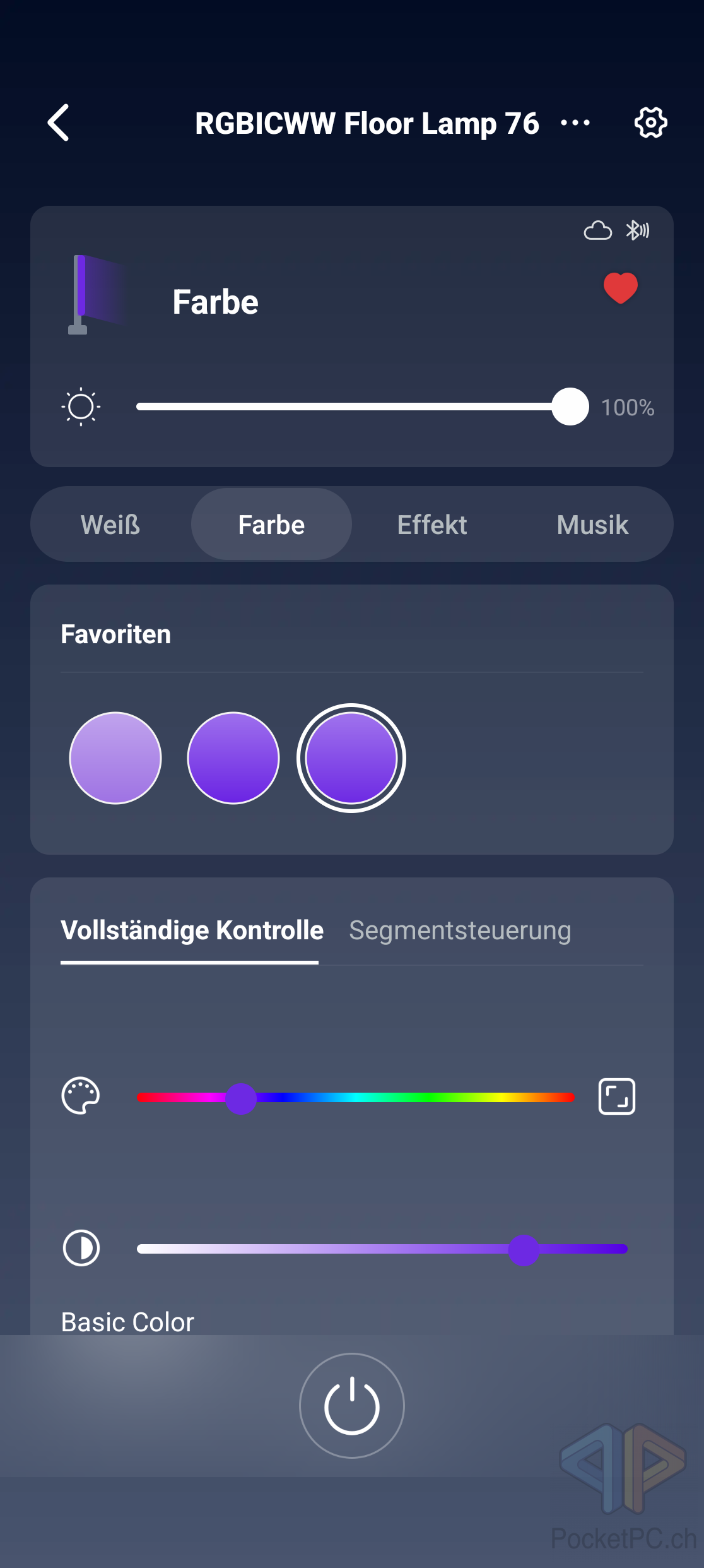 Soweit gibt es an der SwitchBot Stehlampe nichts auszusetzen. Zudem leuchtet sie sehr hell und in tollen, knalligen Farben. Sie eignet sich so, auch dank des eingebauten Mikros, perfekt als Party-Leuchte oder für Ambient-Lights beim Mediengenuss. SwitchBot selbst empfiehlt, sie dabei an die weisse Wand leuchten zu lassen und nicht direkt die LED anzublicken. Im Test zeigt sich, dass jedoch beides ganz gut klappt und den stimmungsvollen Eindruck ermöglicht.