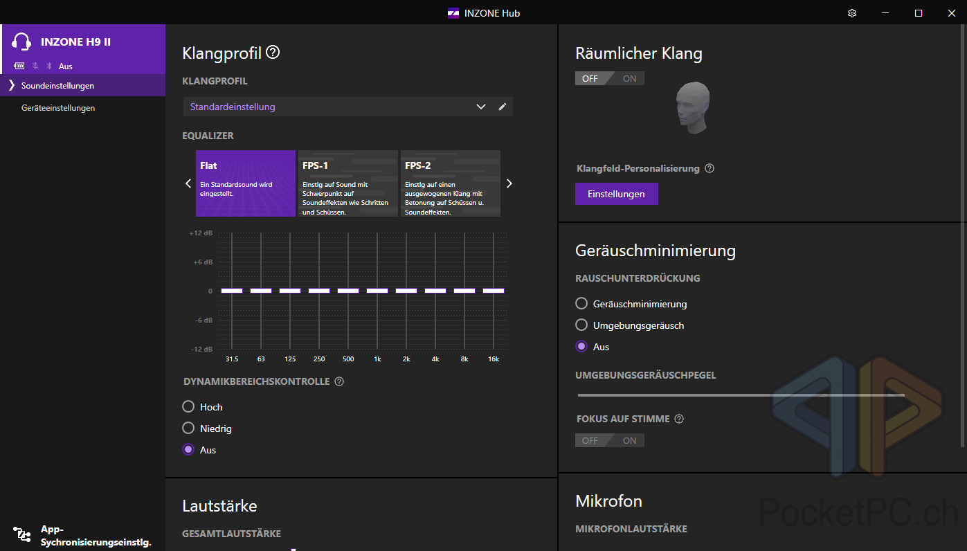 Von Haus aus ist der Sound nämlich zwar in Ordnung oder sogar irgendwie gut, lässt aber ordentlich etwas vermissen, denn die Sony Inzone H9 II klingen absolut rein gar nicht nach ihrem hochgelobten Schwestermodell. Das liegt vor allem daran, dass Sony die Treiber noch einmal für Gaming getuned haben will und anscheinend war das etwas zu viel des Guten. So ist der Übergang zwischen Mitten und Höhen schwammig und im oberen Bereich der Bässe agiert das Inzone H9 II recht impulsiv. Mit dieser Einstellung ist das Modell direkt aus dem Karton nicht einmal wirklich für FPS Games zu gebrauchen. Schlussendlich müsst ihr nämlich auf die Inzone HUB App auf dem PC (leider nur Windows) zurückgreifen oder eben auf die App für Smartphones, um weitere Einstellungen vorzunehmen.