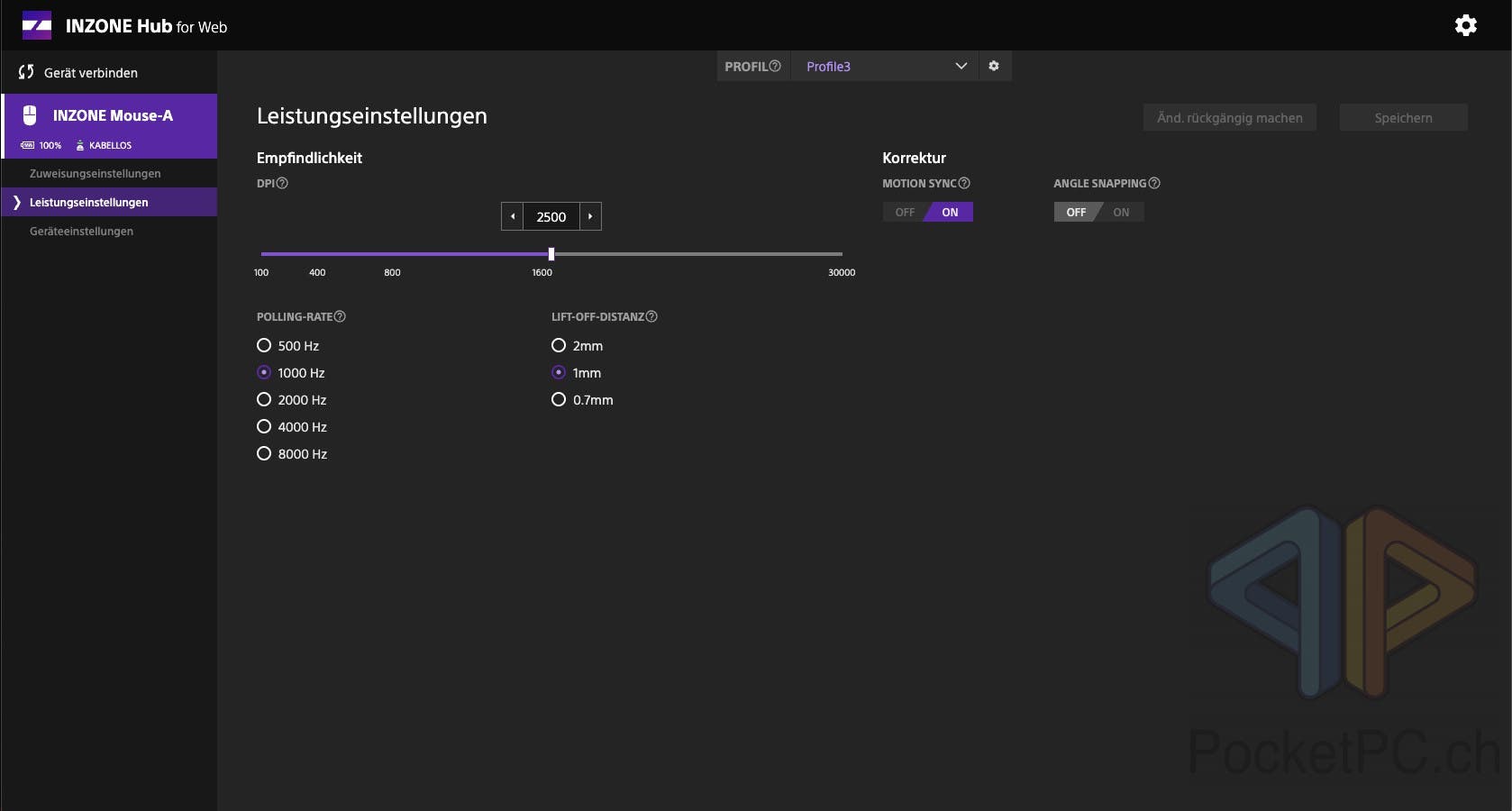 Zudem ist der Inzone HUB nur für Windows verfügbar. Eine native App für Linux und macOS gibt es nicht. Aber Sony arbeitet hier auch mit einem API-Standard, der es euch erlaubt über den Webbrowser auf eure Geräte zuzugreifen. So könnt ihr ohne Probleme Einstellungen wie DPI, Polling-Rate und das Speichern von Profilen einfach über den Webbrowser vornehmen. Das hat vor allem den Vorteil, dass ihr nicht einmal die Software auf Fremd-PCs installieren müsst. Auf Turnieren, wo ihr eure eigenen Eingabegeräte zwar mitnehmen, aber keine zusätzliche Software auf PCs installieren dürft, ist das schon eine tolle Sache.