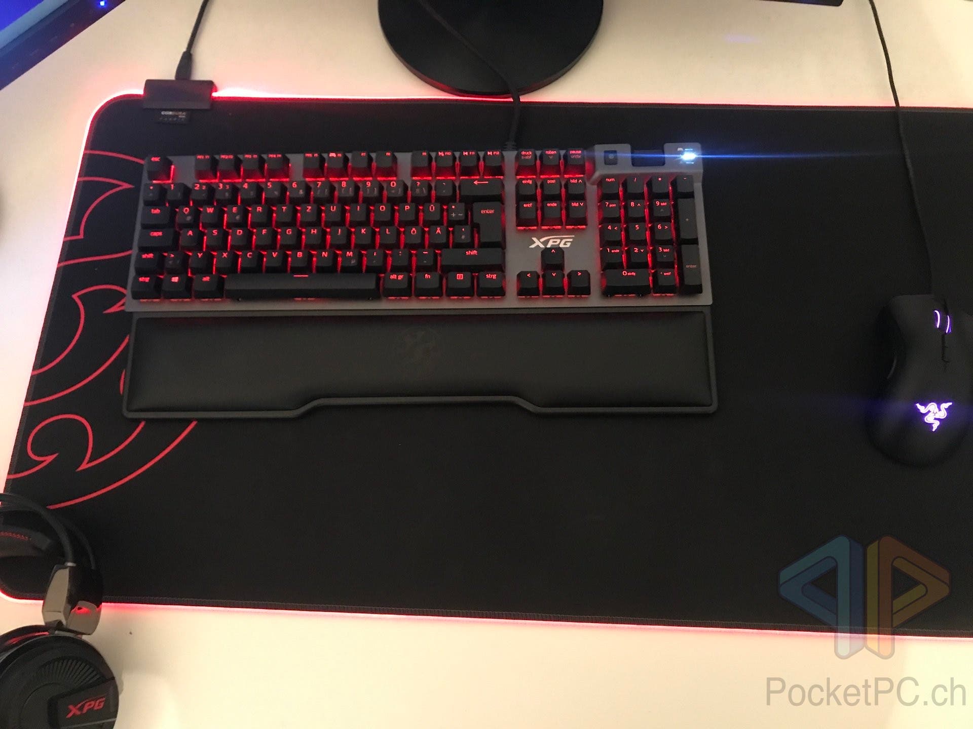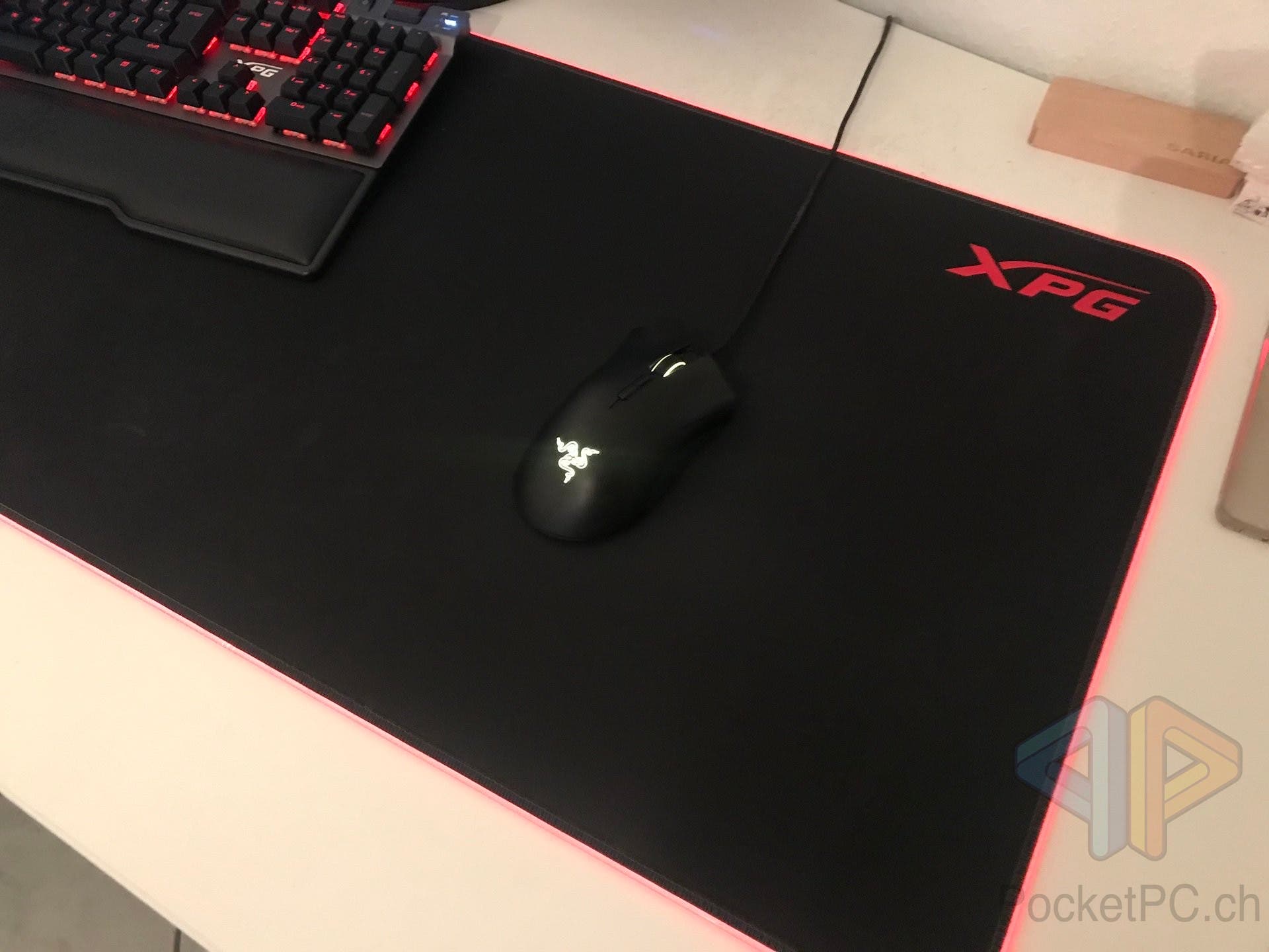 Irgendwie schon ironisch: Eine Razer DeathAdder neben einer XPG Tastatur und auf einem XPG Mauspad. Funktioniert aber tadellos! (Bild: PocketPC.ch / Laser)