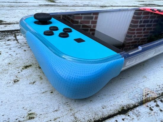 Besonders überraschend ist allerdings die funktionale Ausstattung. Auch wenn es sich hier um einen wabbeligen Überzug handelt, die man in der Smartphone-Branche auch als Handy-Kondom bezeichnen würde, hat Zagg GEAR4 sich bei der Kita Grip 360 durchaus Gedanken gemacht. Die Aussen sind nämlich wie kleine, leichte Haltegriffe geformt und bringen so deutlich mehr Komfort beim Spielen mit. Die Nintendo Switch lässt sich einfach besser halten.