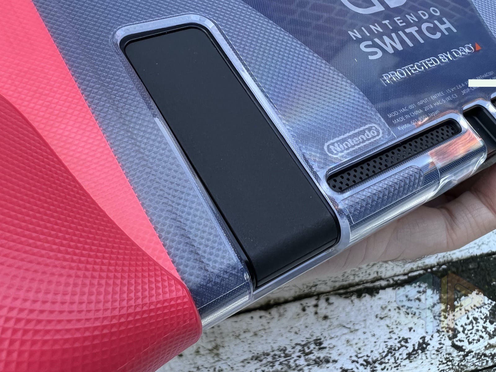 Kleiner Kritikpunkt bleibt: Die Knöpfe oben sind etwas schwerer zu drücken. Es ist also nicht immer klar, ob ihr die Standbytaste wirklich getroffen habt oder dann doch etwas mehr Druck ausüben müsst. Hier braucht es dann etwas Training beim Ertasten, geht aber mit einiger Zeit auch. Richtig stark: Die Nintendo Switch passt mit der Schutzhülle auch noch ins Dock und wird geladen! Setzt ihr auf externe Pro-Controller, brauch ihr die Joy-Cons nicht einmal mehr abnehmen, es sei denn natürlich die Spiele erfordern es.