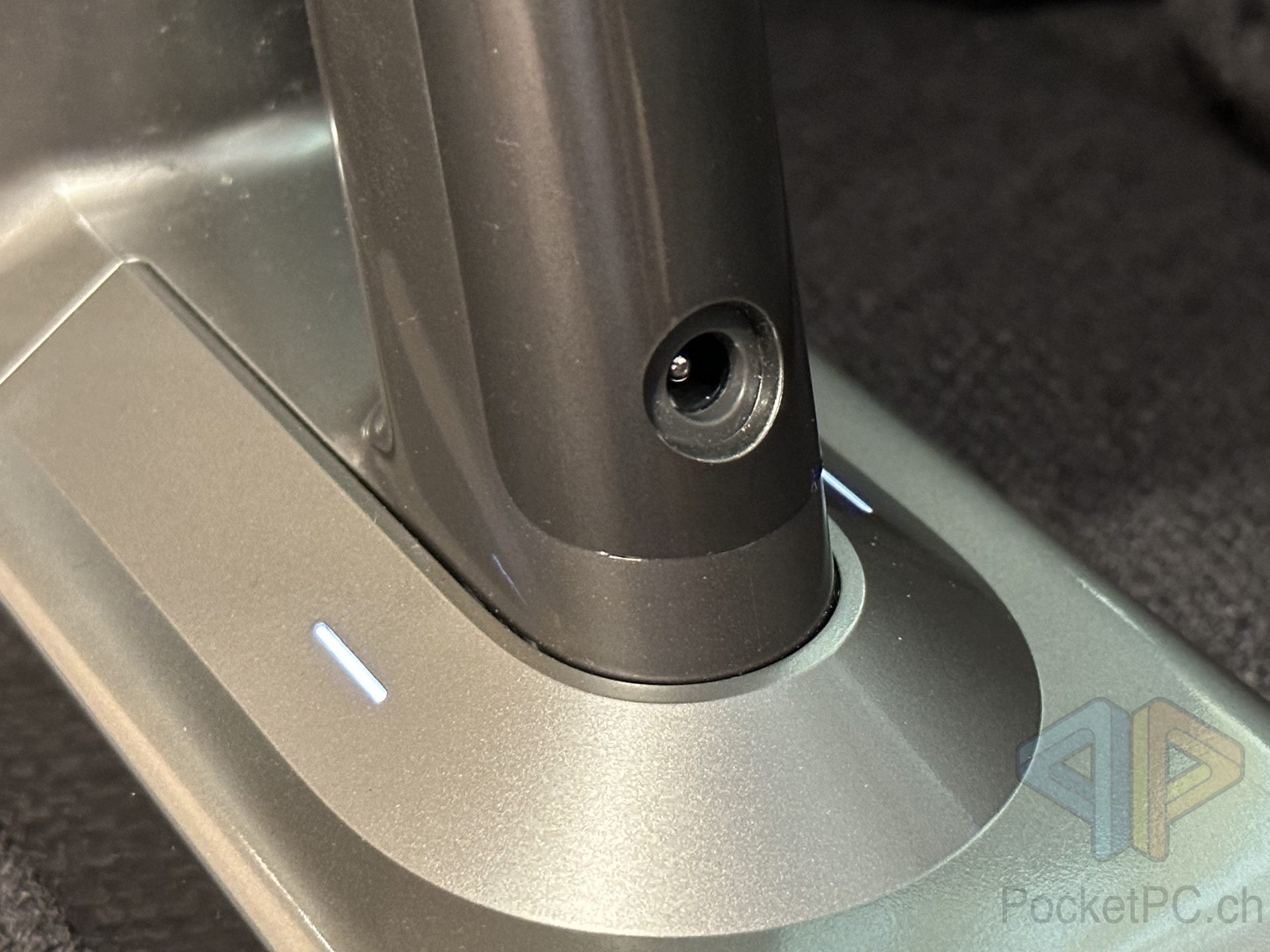Die Saugleistung kann wie erwähnt nur zwischen Maximum oder Automatik eingestellt werden. Im Automatikmodus entscheidet der Dreame R20 selbst, wie stark gesaugt wird. Das war bislang immer richtig. Die Erkennung geht sehr schnell vonstatten, es wird nicht unnötig lange eine hohe Drehzahl gehalten und somit Strom gespart. Beim gelegentlicher Benutzen als Handstaubsauger muss man darum eher selten den Akku aufladen. Alle zwei bis drei Wochen reicht. Der Staubsauger lässt sich wahlweise in der Halterung oder direkt durch direktes Einstecken vom Ladegerät aufladen. Damit ist man freier in der Unterbringung des Gerätes.