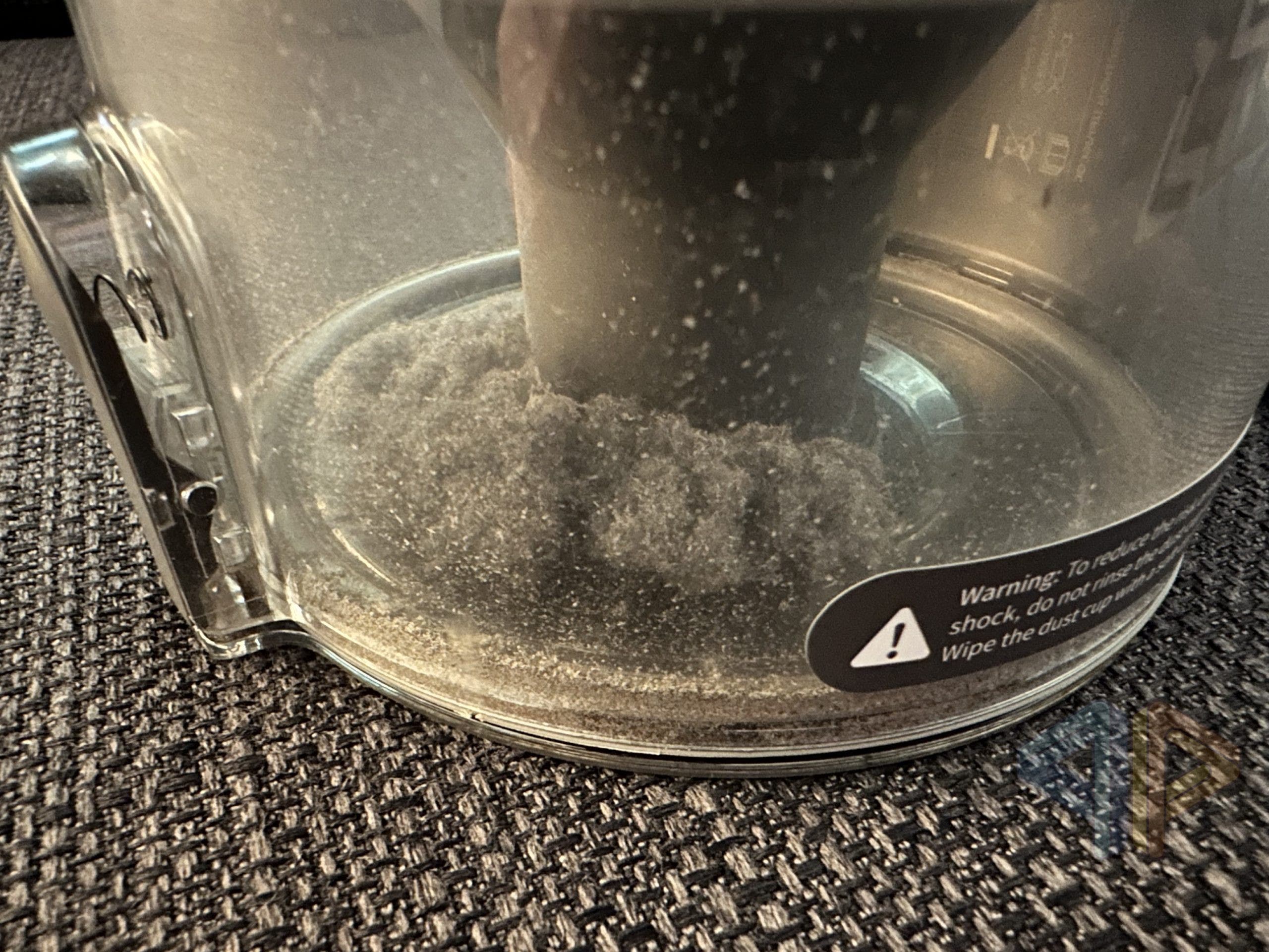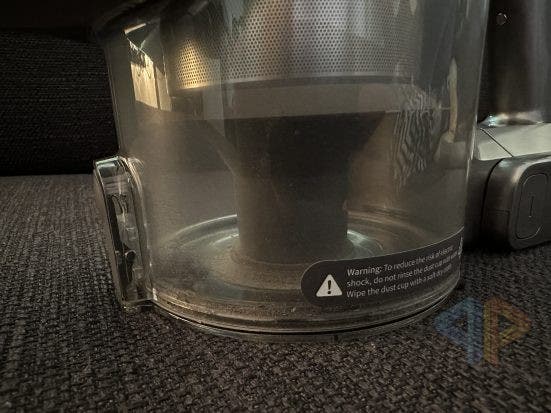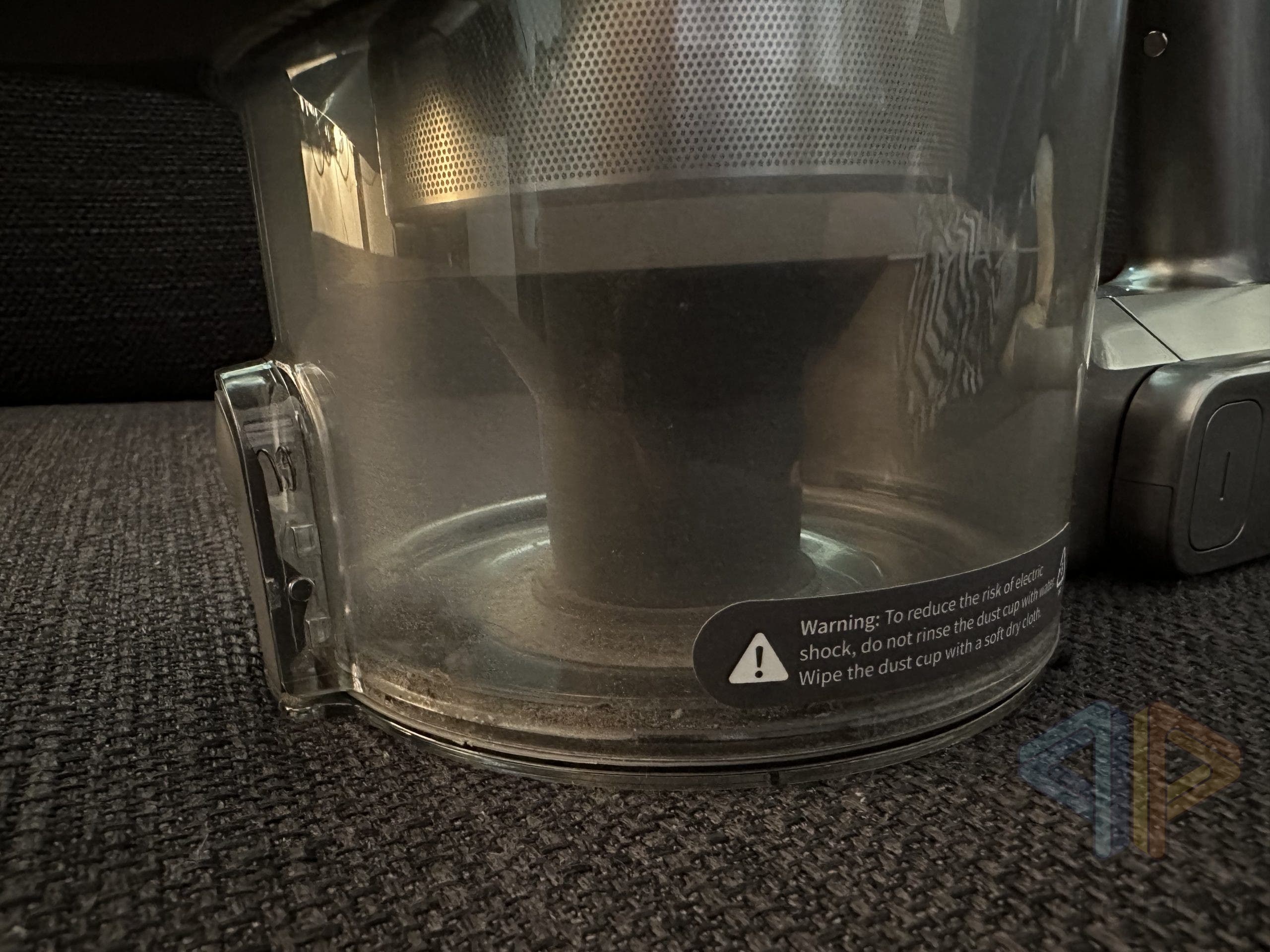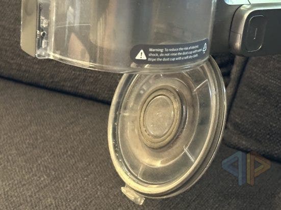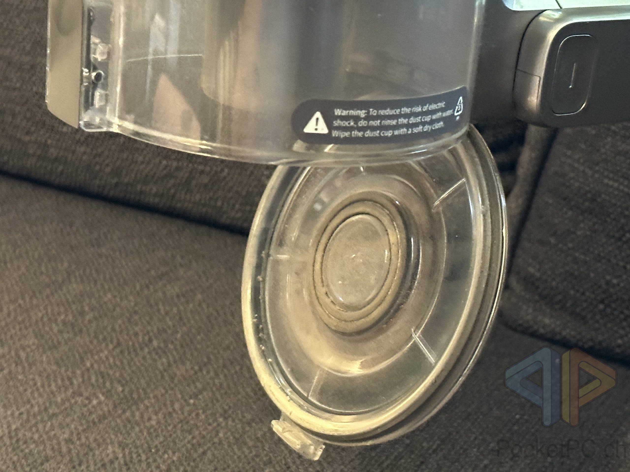 Der Akkusaugerfinder von Smarthome Assistant ist eine super Anlaufstelle um entsprechende Zahlen im Vergleich zu anderen Geräten zu erhalten. Sie testen ihre Staubsauger mit immer dem gleichen Verfahren. Schaut euch dort gerne die Saugleistung des Dreame R20 im Vergleich an. Wir können euch bei uns aber einen subjektiven Eindruck zur Saugleistung geben und dieser ist durch die Bank weg sehr gut. Dass loser Schmutz auf Hartboden von so gut wie jedem Gerät aufgesaugt wird, ist heutzutage wohl keine Kunst. Auch fällt nach dem Ausschalten des Stielsaugers nichts wieder aus dem Saugrohr nach unten, alles landet und bleibt im Behälter. Dafür hat wird der Schmutzbehälter mit einer Klappe per Schwerkraft verschlossen.