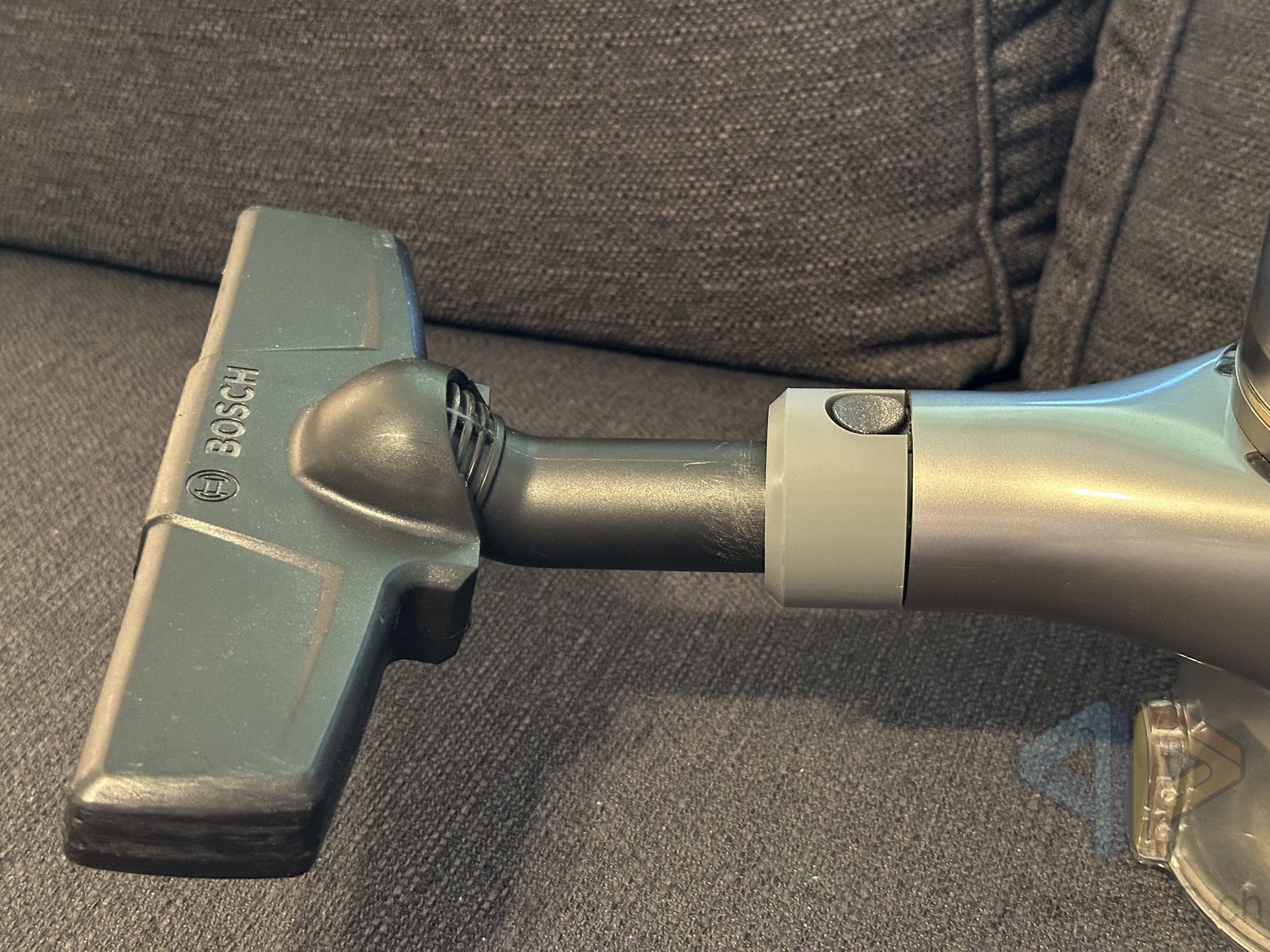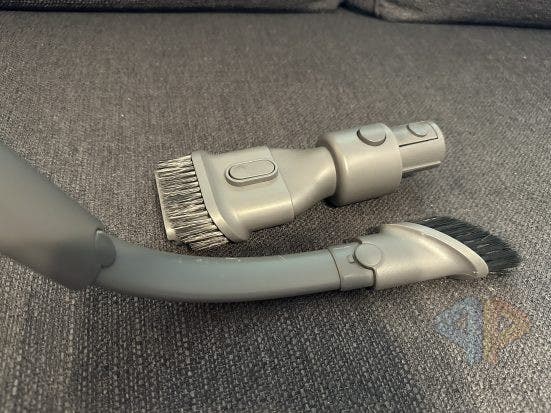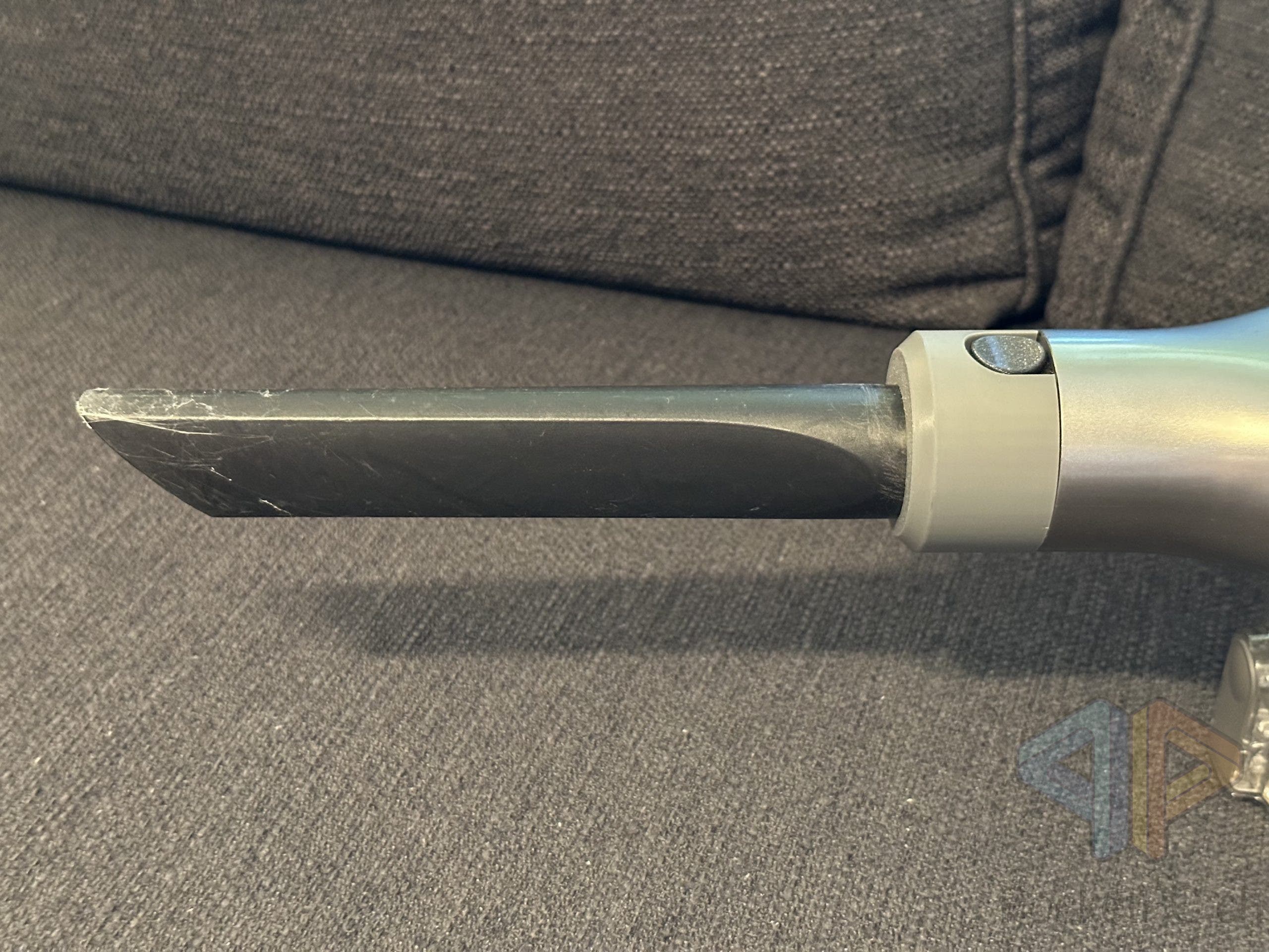 Die 2-in-1-Bürste und flexible Fugenbürste erfüllen ihren Zweck, haben aber jeweils einen kleinen Nachteil: Die 2-in-1-Bürste ist an manchen Stellen zum gezielteren Saugen an engen Stellen manchmal etwas zu breit und durch die Borsten der flexiblen Fugenbürste lässt sich der Schmutz nicht ganz so gut lösen und aufsaugen. Durch die Borsten ist das Vakuum nicht mehr so stark und möchte man zum Beispiel im Saugen zwischen den Sitzen Dreck lösen, gelingt das nicht immer so gut. Eine starre Fugenbürste ohne Borsten wäre hier besser gewesen, allerdings hat die aktuelle Variante auch eine Daseinsberechtigung. Die Flexibilität ist nämlich auf den den ersten Blick gar nicht so ersichtlich. der vordere Part lässt sich herausziehen, wodurch man an Stellen gelangen kann, die man sonst nicht unbedingt erreichen würde.