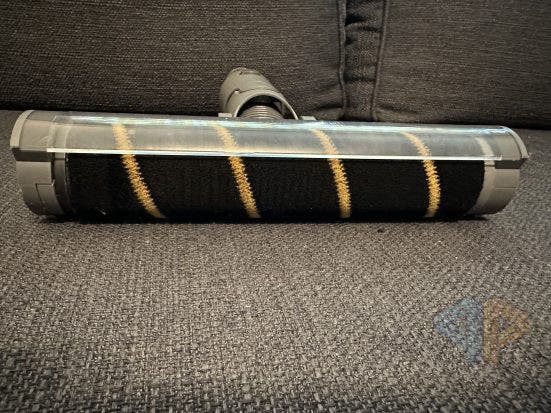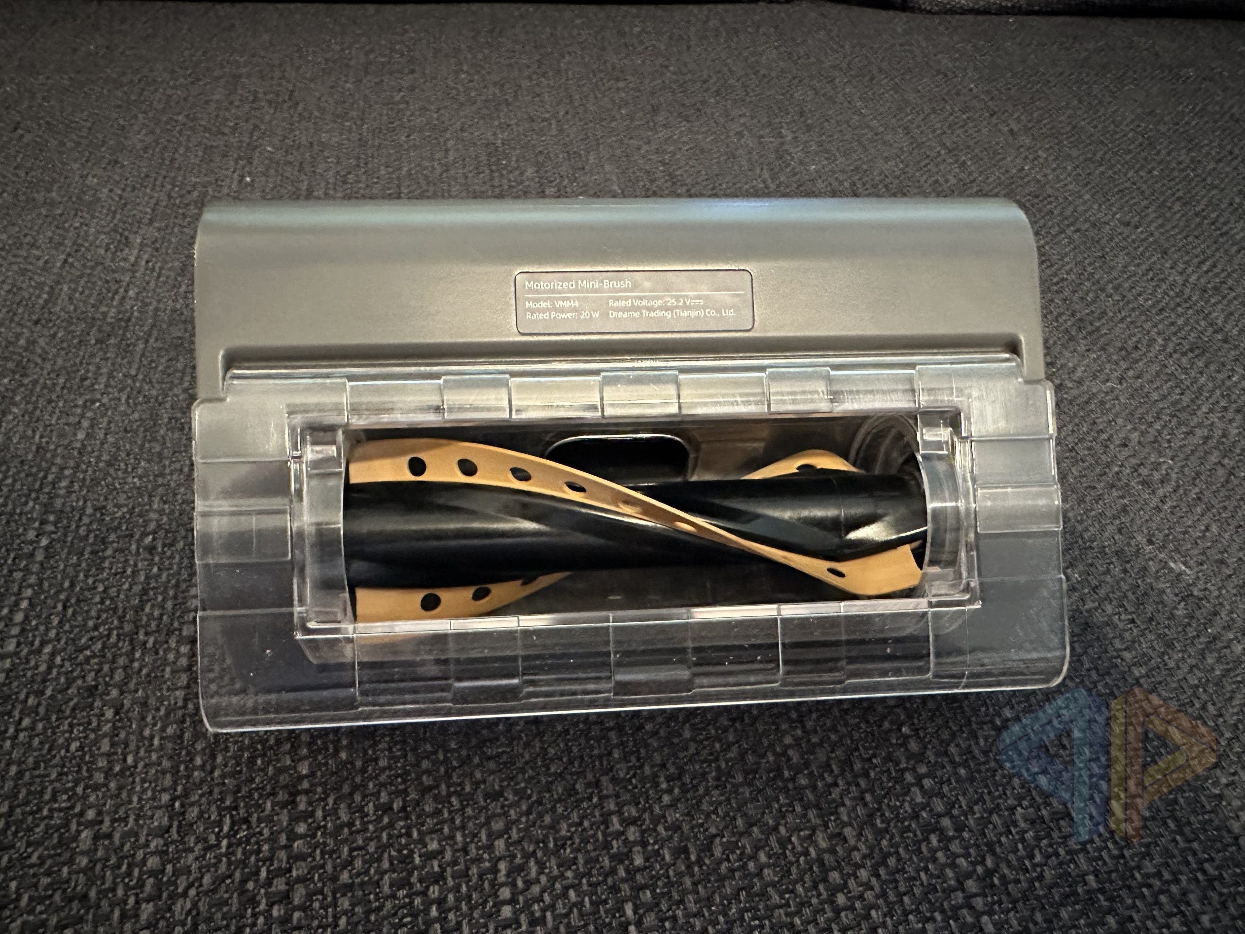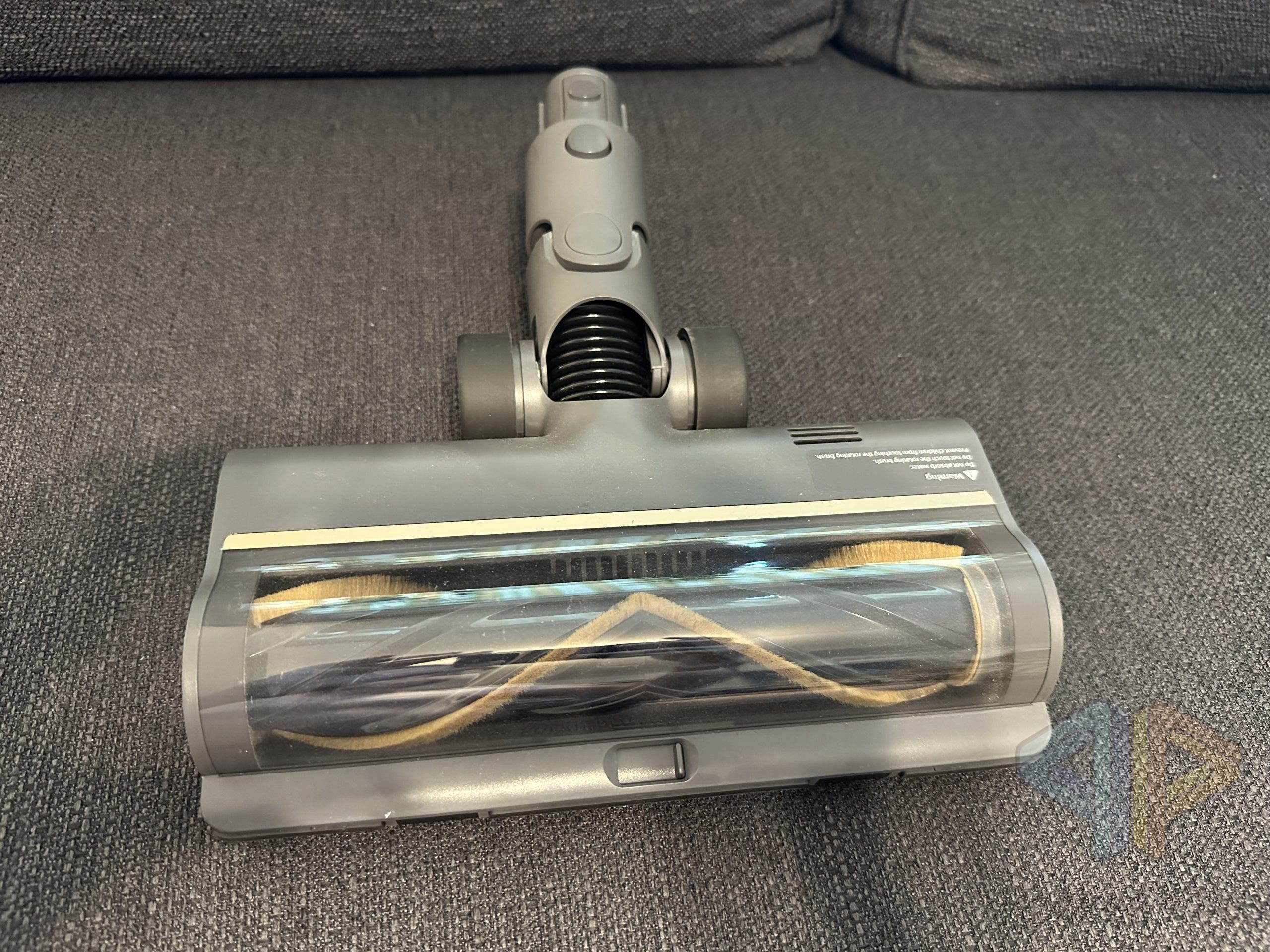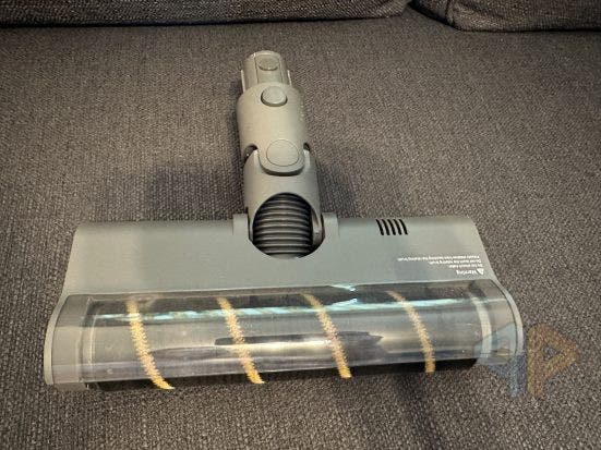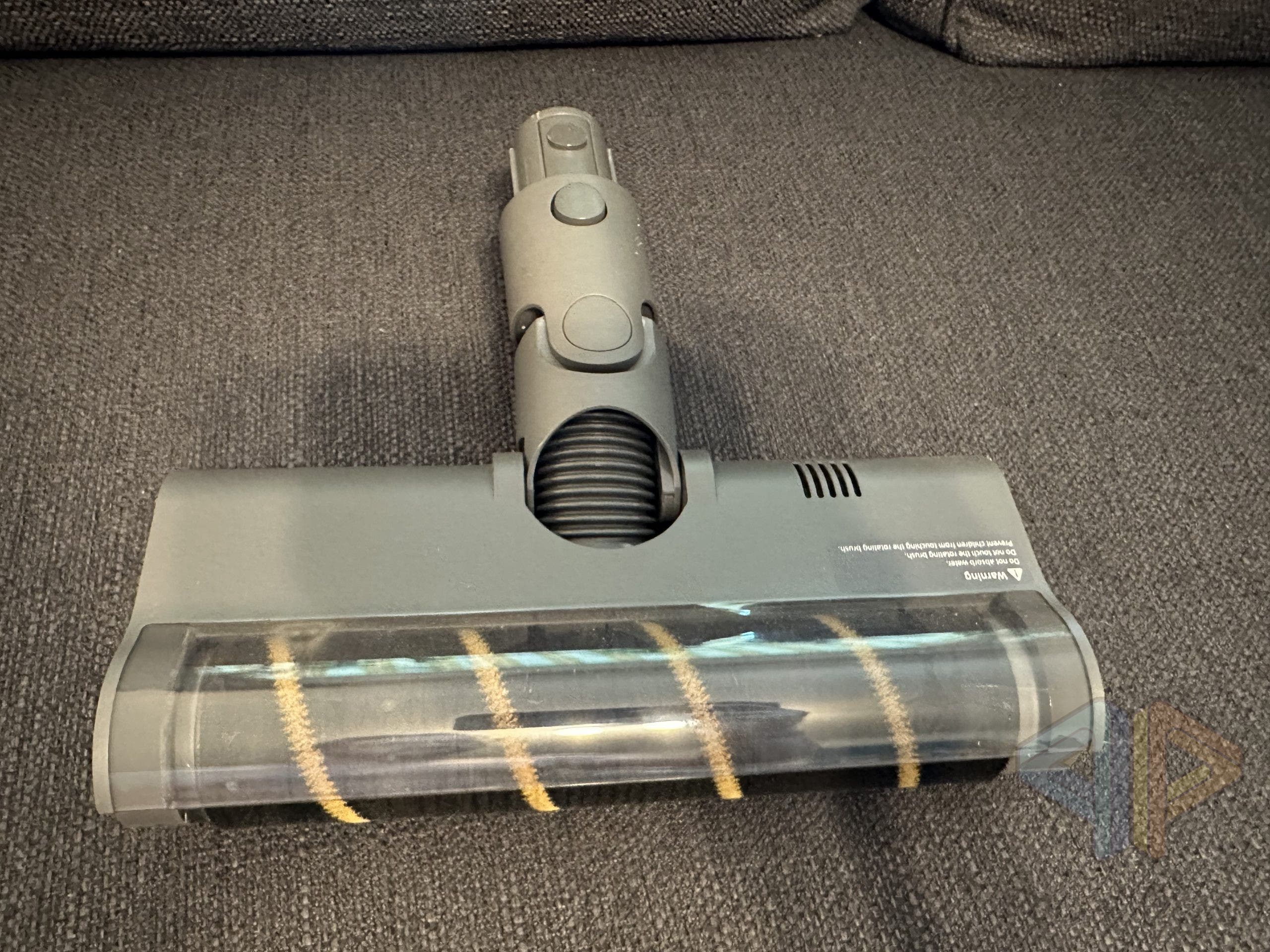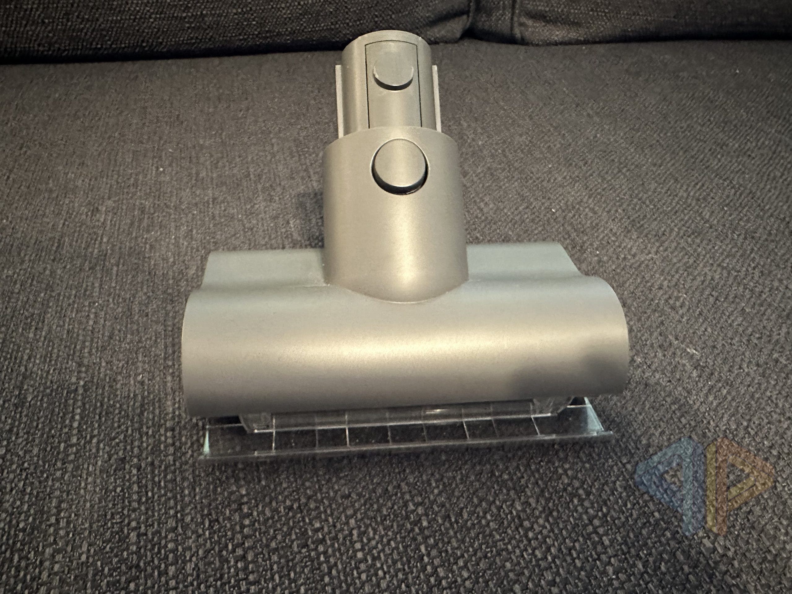 Bevor wir zum Highlight kommen, besprechen jedoch wir noch die weiche Hartboden- und Polsterbürste. Die Hartbodenbürste ist entsprechend nicht für Teppiche ausgelegt, macht aber auf Fliesen oder auch Laminat einen sehr guten Job. Gröberer Schmutz werden zwar auch mal zur Seite geschossen, es lässt sich aber am Ende alles sehr gut und nach wenigen Zügen aufsaugen. Es ist auch immer wieder erstaunlich, was der Dreame R20 auf Polstern oder im Teppich an Staub herausholt.