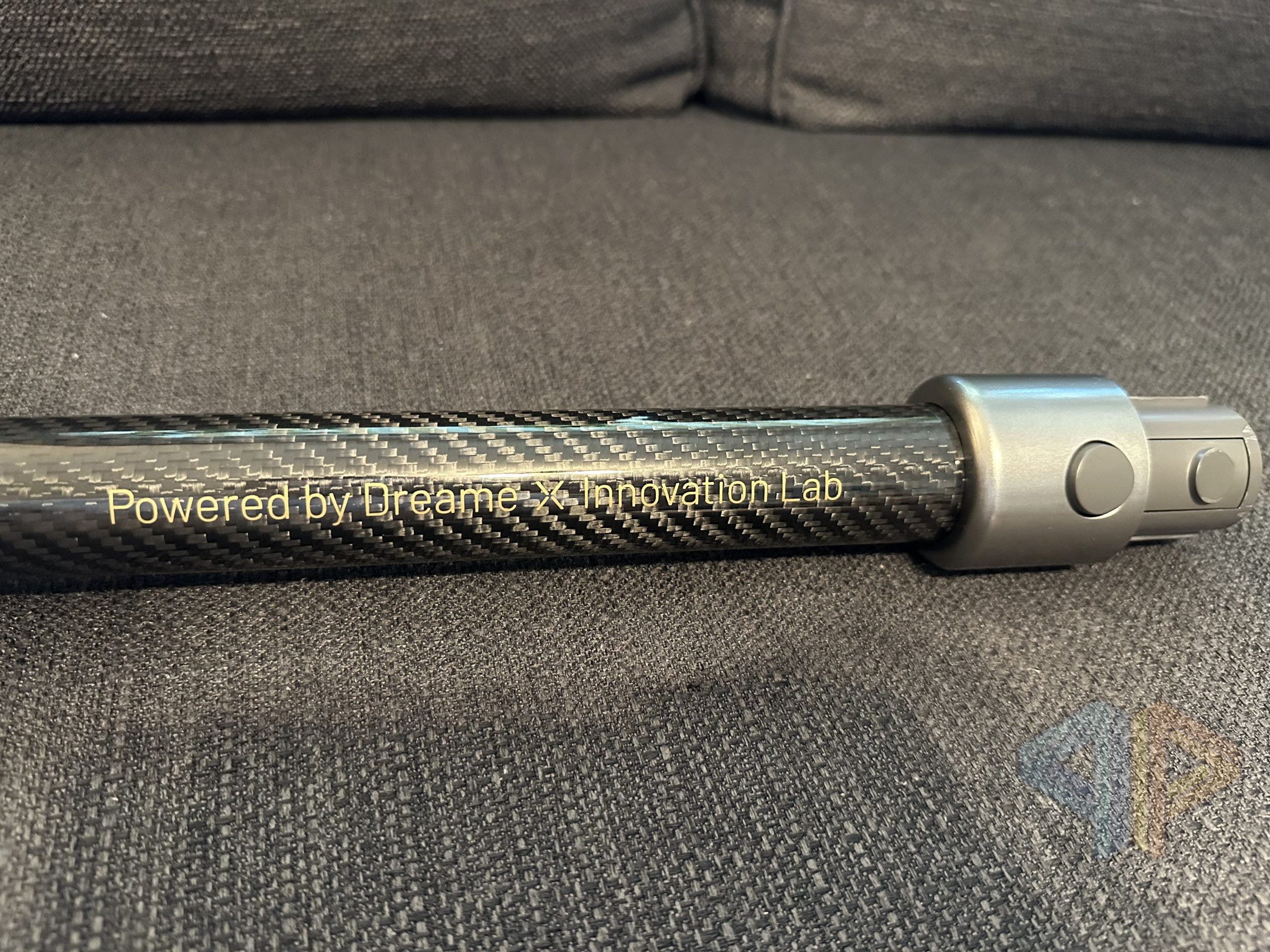 Das Karbonrohr ist schön leicht und lang genug, um angenehm den Boden saugen zu können. Dank des Knickadapters kann man so auch angenehmer unter Möbeln saugen.