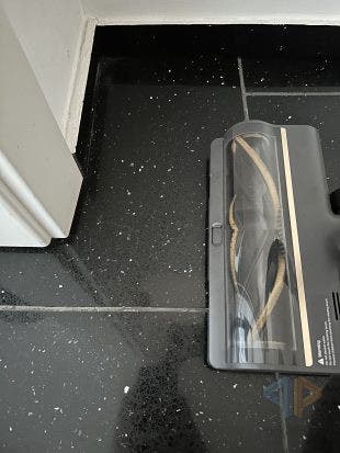 Die Spreu trennt sich bei Teppichen vom Weizen. Die Kür stellt der Hochflorteppich dar. Was das Gerät hier an Staub aus dem Teppich holt, ist wirklich sehr erstaunlich. Und es handelt sich nicht um Teppichfasern, sondern tatsächlich Staub, welcher in der Hand zerbröselt, wenn man ihn verreibt. Am Ende bleibt uns zwar nur das sichtbare Ergebnis im Staubbehälter, aber dieses vermag zu überzeugen. Etwas Kritik gibt es dann allerdings leider im Randbereich, denn hier bleibt Staub stehen. Es ist also noch Luft nach oben und Verbesserungen, die wir uns für das nächste Modell wünschen würden. Der komplette Wohnungsputz lässt sich definitiv mit einer Akkuladung des Dreame R20 durchführen.