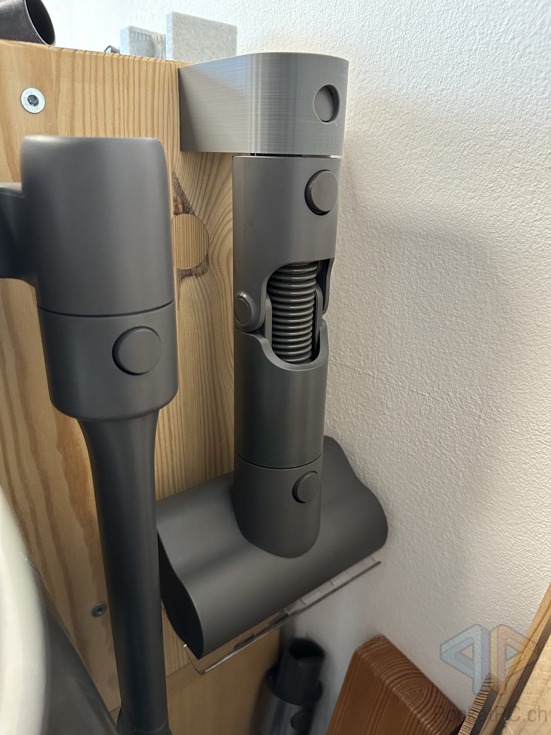 Die Polsterbüste lässt sich indes nicht am oberen Ausdruck befestigen, da diese etwas mehr von der Wand absteht. Abhilfe schaffen hier der Xiaomi Dreame XR / V10 Accessory Holder von Bastian.