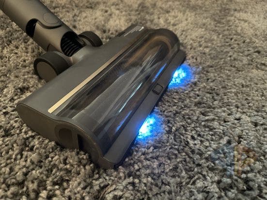 Die LEDs der Multiboden / Teppichbürste sind so ausgerichtet, dass sie den Staub gut sichtbar machen. Bild: PocketPC.ch / Kuckhoff