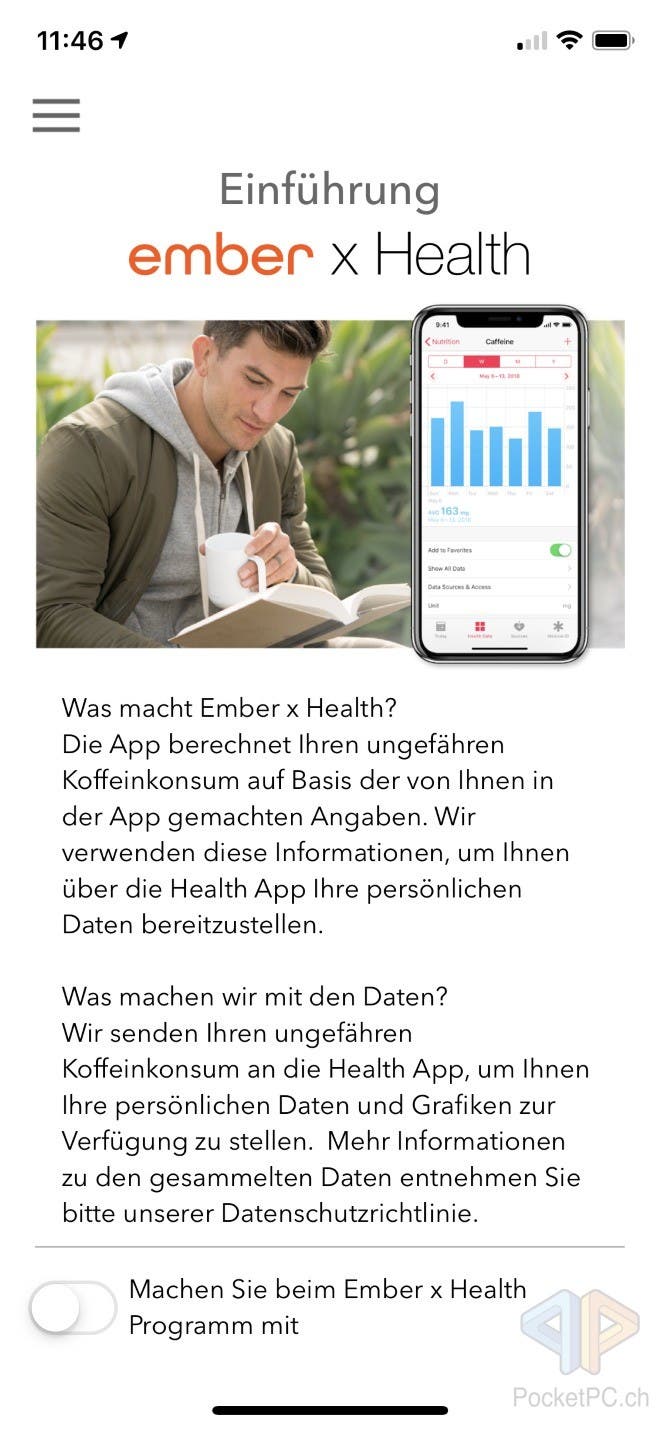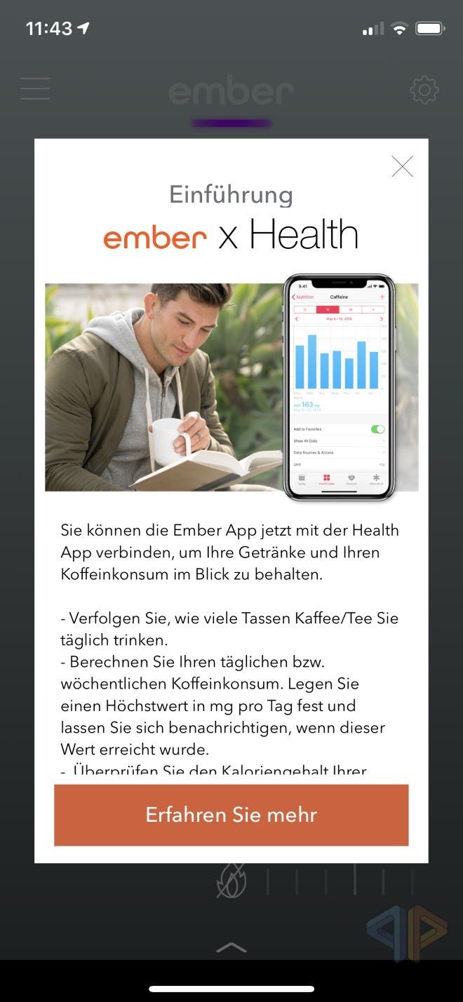 Und neuerdings kann die ember App unter iOS mit Apple Health sprechen. Dabei wird errechnet, wie viel Kaffee oder Tee man trinkt und so der wöchentliche Koffeinkonsum geschätzt. Sicherlich ein Plus für alle Wachmacher-Junkies, die so endlich ihre Tassen alle im Blick (statt im Schrank) haben können.