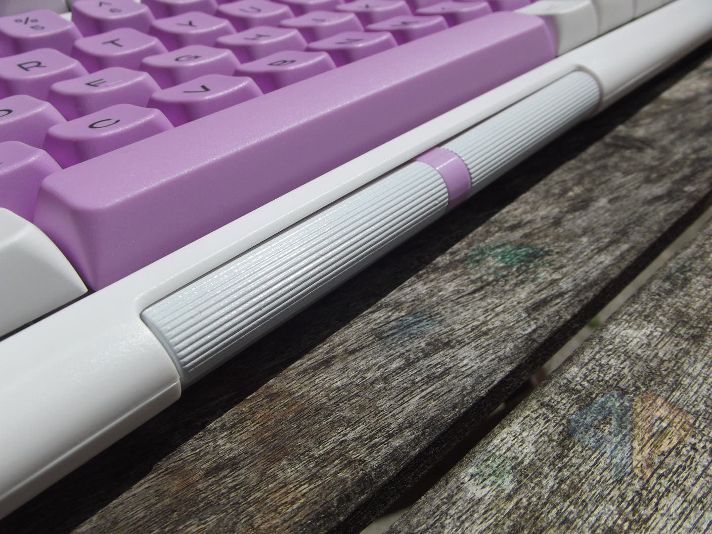 Eine zusätzliche ergonomische Funktion, die einen einfachen Bildlauf und Navigation ermöglicht, sind die beiden Zylinder unterhalb der Leerschlagtaste. Diese können wie ein Mausrad gedreht werden und steuern von Haus aus die Lautstärkeund die Hintergrundbeleuchtung. Mittels Epomaker Driver App für MacOS X und Windows kann dieses Verhalten leider auch noch nicht nach Belieben angepasst werden.