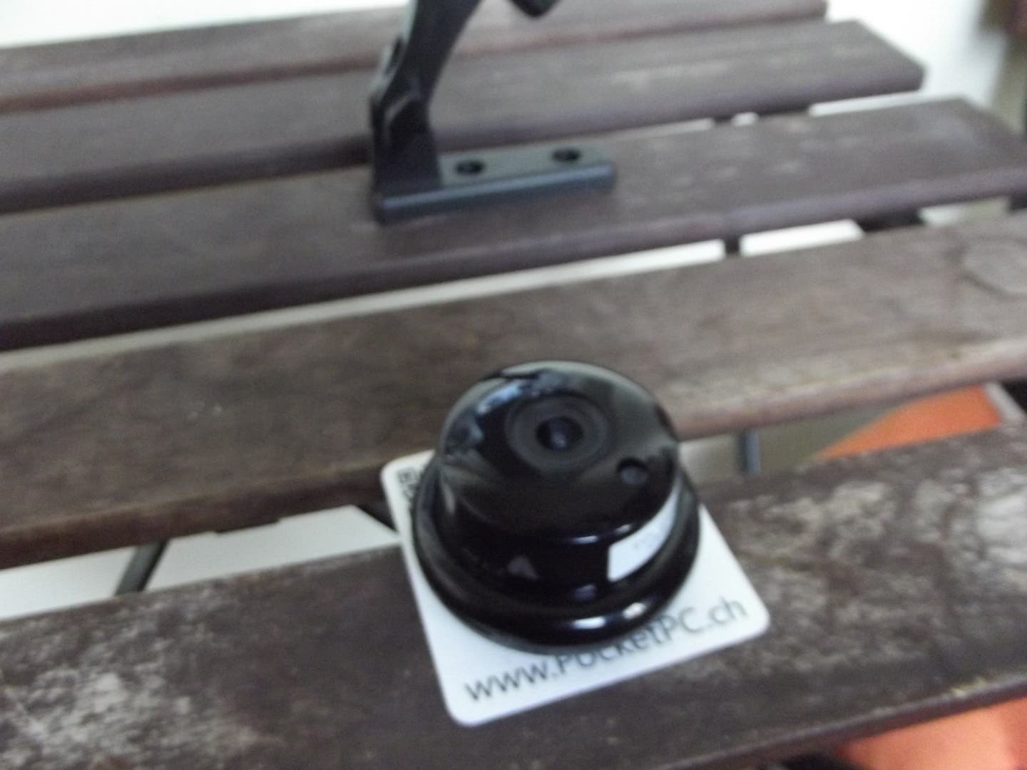 Die Kamera selbst misst gerade mal 35 x 55 mm, ist einfach abschraubbar und passt so auch auf andere Schraubgewinde, während der Standfuss 80 x 85 mm gross und aus Kunststoff ist, auf dem die IP-Kamera um 180 Grad geneigt werden kann.