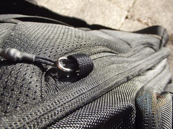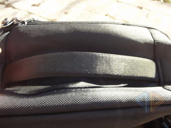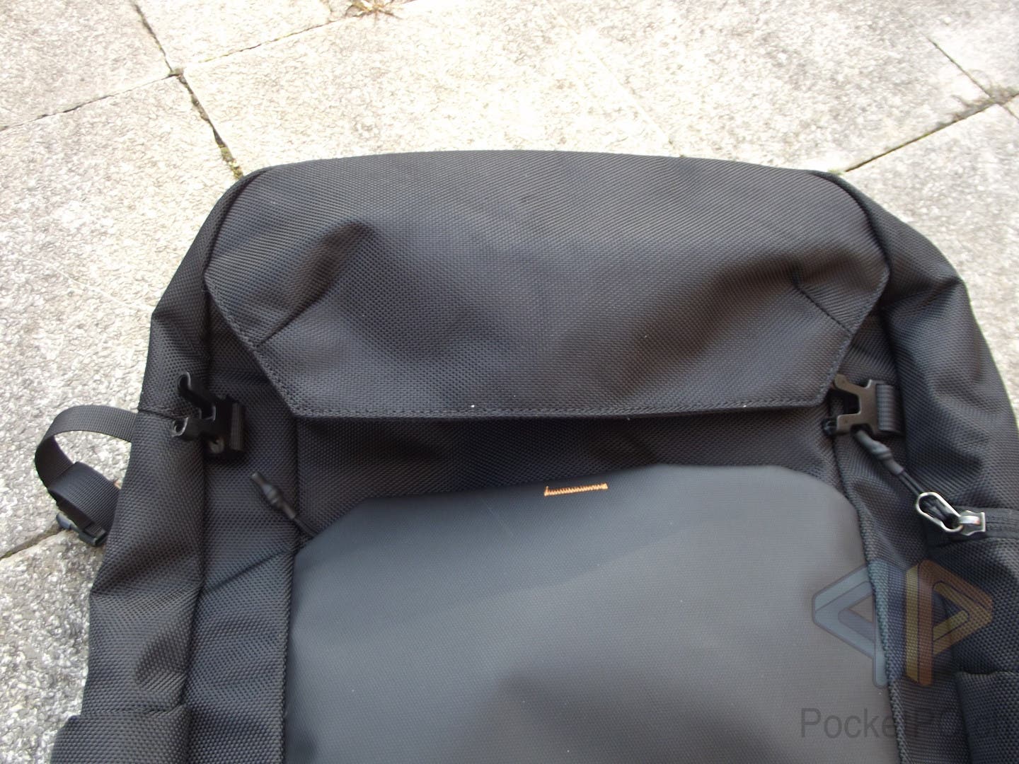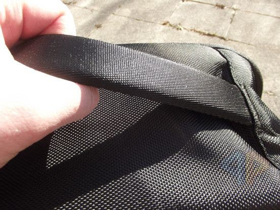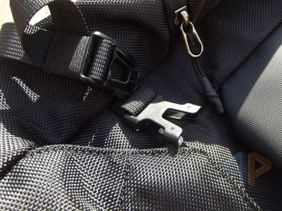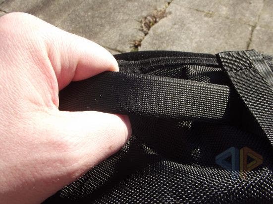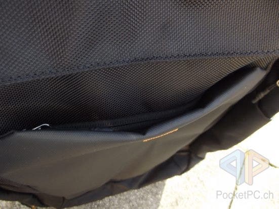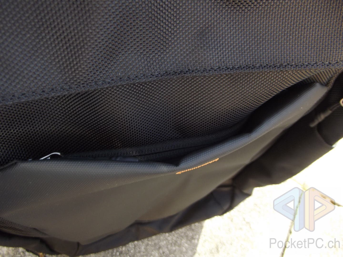 Das gepolsterte Teil am Rücken ist mit einem Netz versehen, welches für einen angenehmeren Tragekomfort sorgt. Ferner lässt sich der Brustgurt anpassen, um die Stabilität des Rucksacks zu verbessern, besonders wenn er stark beladen ist. Für eine bessere Sichtbarkeit unter schlechten Lichtbedingungen sind auf den Schultergurten reflektierende Bänder angebracht.