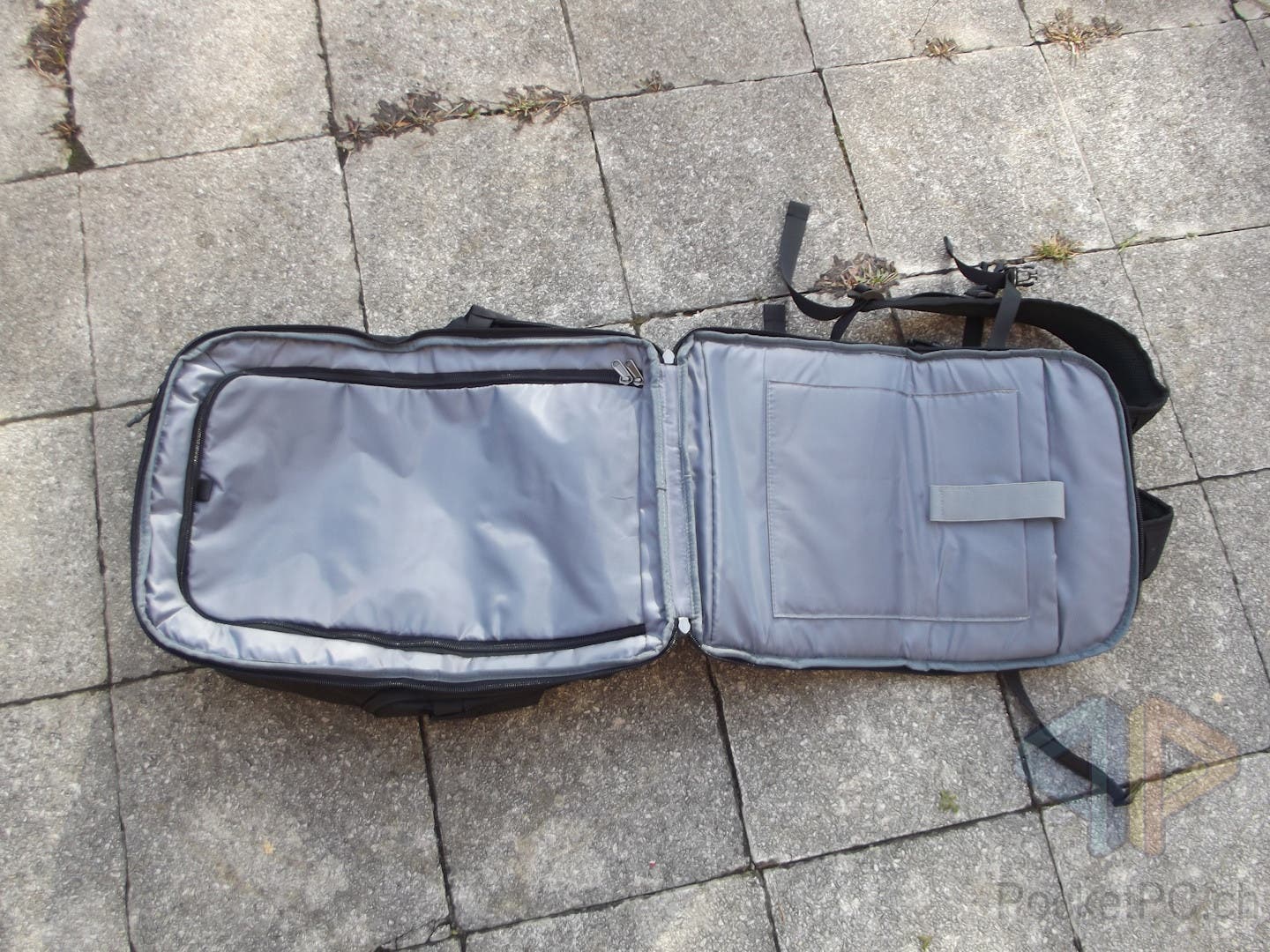 Der Rucksack lässt sich vollständig öffnen, was ihn besonders geeignet für Übernachtungen im Hotel macht, da er sich so leicht bepacken lässt.