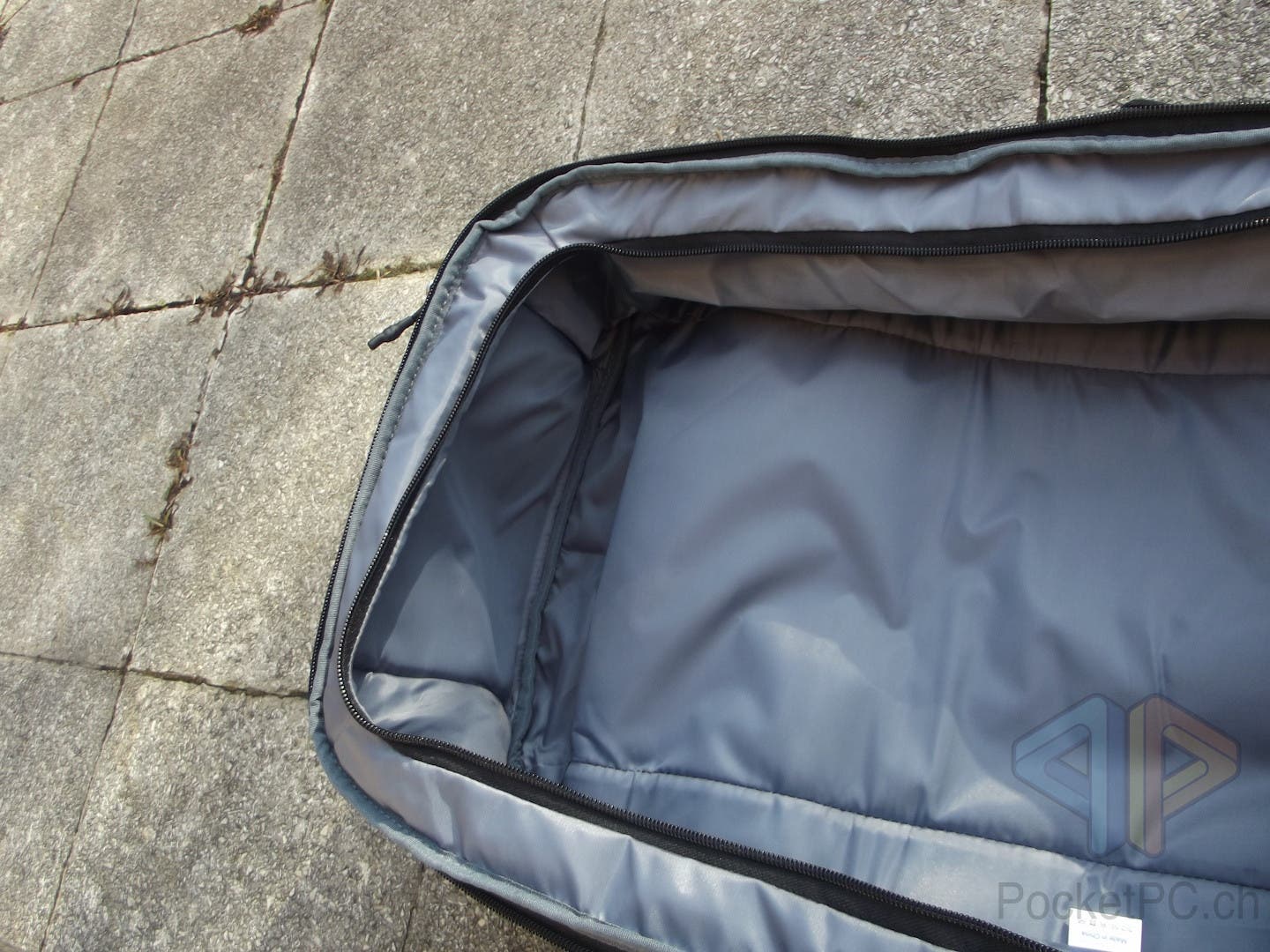 Wichtig ist jedoch,für die TSA-Freundlichkeit: Für eine effiziente Sicherheitsüberprüfung lässt sich das Hauptfach dieses Rucksacks vollständig um 180 Grad öffnen. Auf diese Weise ist es nicht nötig, den Laptop oder andere Objekte herauszunehmen. Ein Fach ist speziell für Laptops bis zu 17 Zoll konzipiert, während ein weiteres Fach Platz für 12-Zoll-iPads bietet. Ein separater Bereich für das Gepäck, ausgestattet mit einer abtrennbaren Reissverschlusswand, dient der gesonderten Lagerung von Bekleidung. Damit sind die Anforderungen der Transportation Security Administration (TSA) an die schnelle und effiziente Gepäckkontrolle erfüllt.