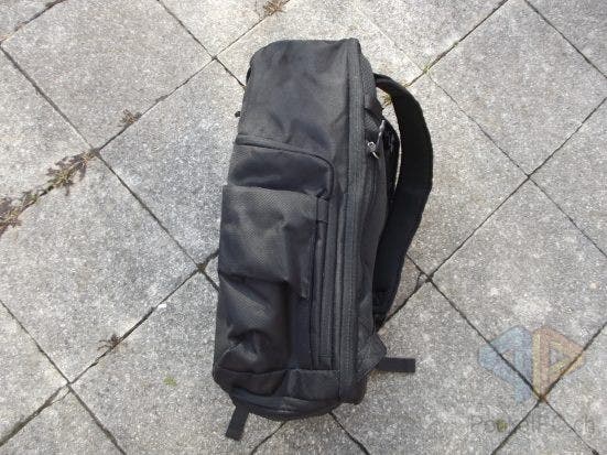 Durch vier seitliche Riemen kann der Rucksack enger gemacht werden, was ein körpernahes Tragen ermöglicht und somit den Tragekomfort erhöht sowie den Rücken schont. Die Verwendung dieser seitlichen Kompressionsriemen erlaubt es, das Volumen des Rucksacks zu verringern und die Last dichter am Körper zu positionieren, was sowohl die Balance als auch den Komfort beim Tragen steigert. Neben zwei gepolsterten und luftdurchlässigen Schulterriemen bietet der Rucksack auch einen Gepäckriemen auf der Rückseite, der die Befestigung an einem Rollgepäckstück ermöglicht. Für zusätzliche Trageoptionen sorgen ein gepolsterter Handgriff an der Seite sowie ein weiterer am oberen Teil des Rucksacks, was das manuelle Tragen wie mit einer Handtasche erleichtert.