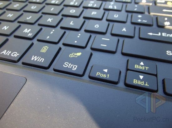 Mit den Funktionstasten in der oberen Reihe können unter Windows und Android unterschiedliche Dinge direkt ausgeführt werden, etwa die Lautstärkeregelung, Bildschirmhelligkeit oder Screenshots. Zudem ist die Bildschirmsperre direkt aufrufbar. Auch kann das Touchpad mit einer Tastenfunktion (Fn + Strg rechts) deaktiviert werden.