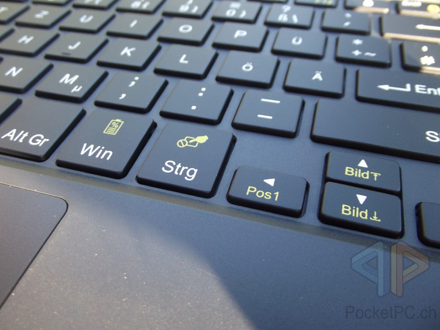 Zudem befindet sich mittig unterhalb der Tasten ein 55 x 95 mm grosses Touchpad ohne physische Tasten.
