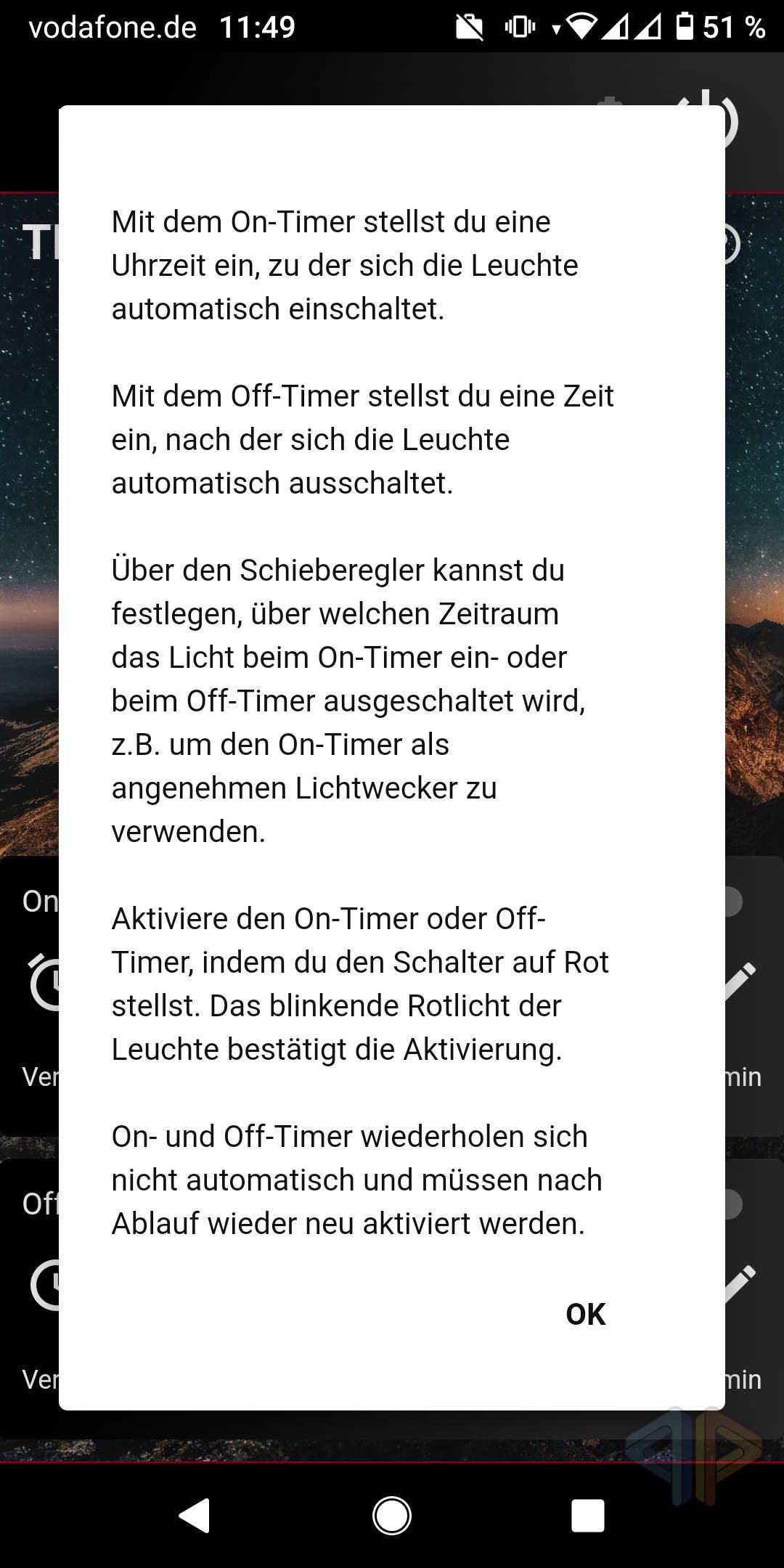 Und, das ist an der Stelle wohl der wichtige Aspekt: Dafür regelt die Lampe nicht einfach die Leistung herunter und man hat die Entscheidung, wie lange man welche Helligkeit und damit auch entsprechende Wärmeentwicklung haben möchte. Die Steuerung liegt komplett in der eigenen Hand bzw. bei der App.
