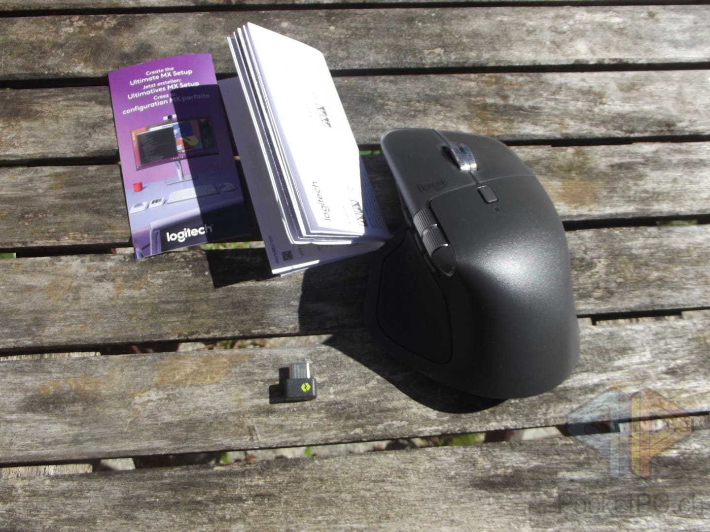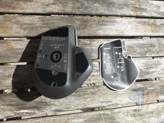 Im Karton zusammen mit der MX Master 4 befindet sich nur ein LogiBolt USB-C-Empfänger sowie Konformitäts- und Kurzanleitungen und ein Flyer mit Werbung für andere Logitech MX Produkte. Kein Ladekabel, nichts. Klar, denn die Logitech MX Master 4 wird per USB-C aufgeladen und das hat nun wirklich jeder Haushalt zur Genüge herumliegen. Auf der Unterseite der Maus ist, wenn man das noch als Lieferumfang bezeichnen möchte, ein leicht ablösbarer Sticker angebracht, der erklärt, dass die Maus nach dem Einschalten per Bluetooth LE 5.1 verbunden werden kann. Will man allerdings Logitechs eigene LogiBolt Technologie nutzen, muss das entsprechende USB-Dongle zuvor am Rechner eingesteckt und konfiguriert worden sein.