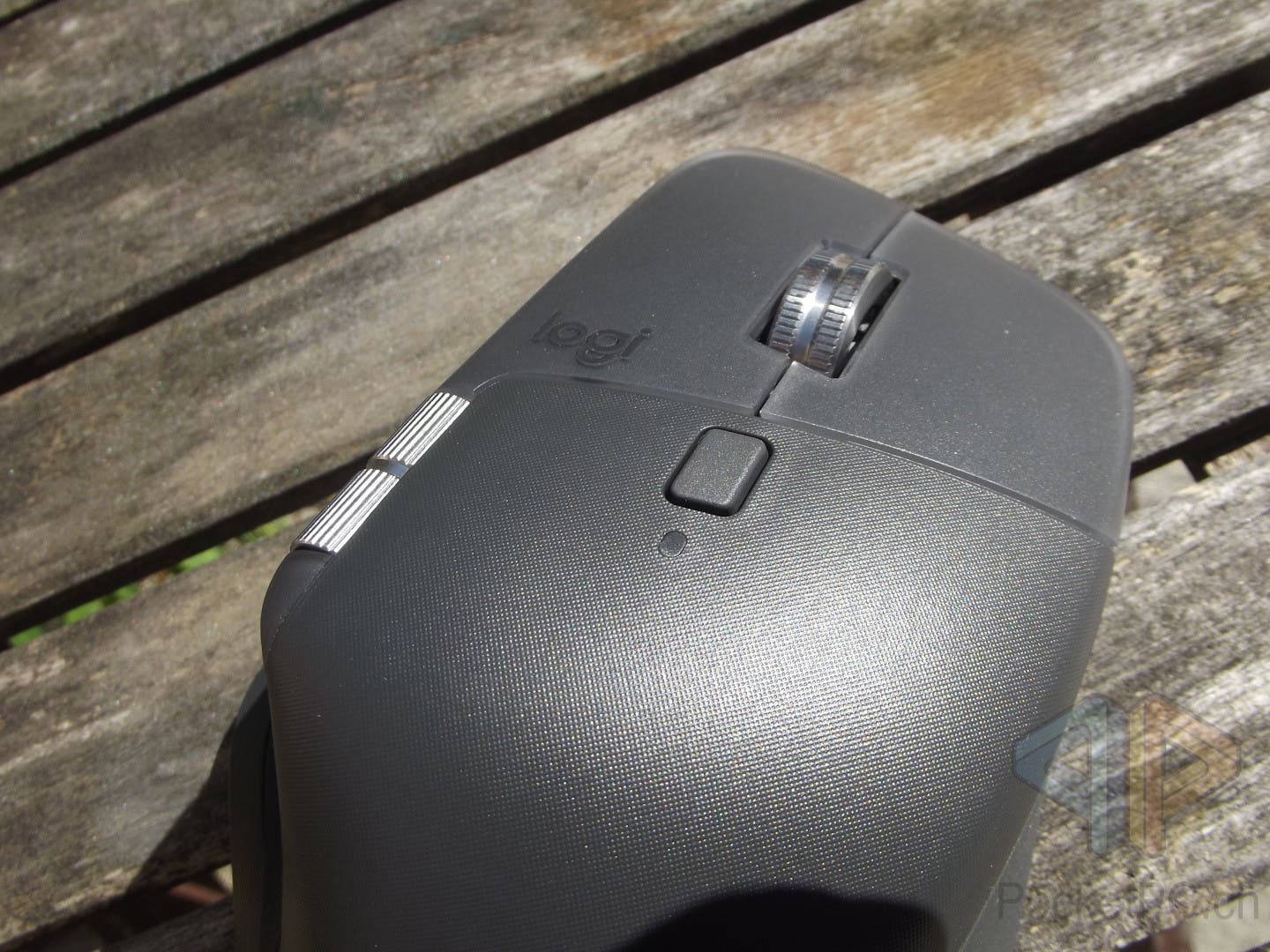 Die Maus verfügt insgesamt über acht Tasten und zwei Scrollräder. Neben der rechten und linken Maustaste sowie dem MagSpeed Scrollrad dazwischen, das ebenfalls über eine Tastenfunktion verfügt, sind darunter eine kleine Lade-LED und eine Modus-Umschalttaste zu finden. Diese Modus-Taste kann jedoch ebenfalls frei programmiert werden mittels Software von Logitech. Das Magspeed Scrollrad mit Smart Shift ist wiederum aus gerilltem Aluminium gefertigt.