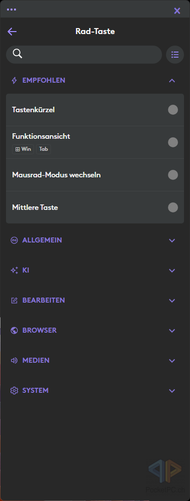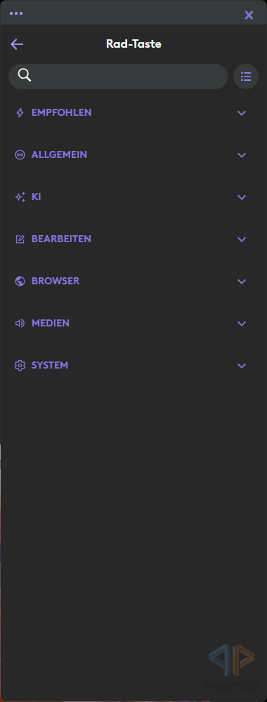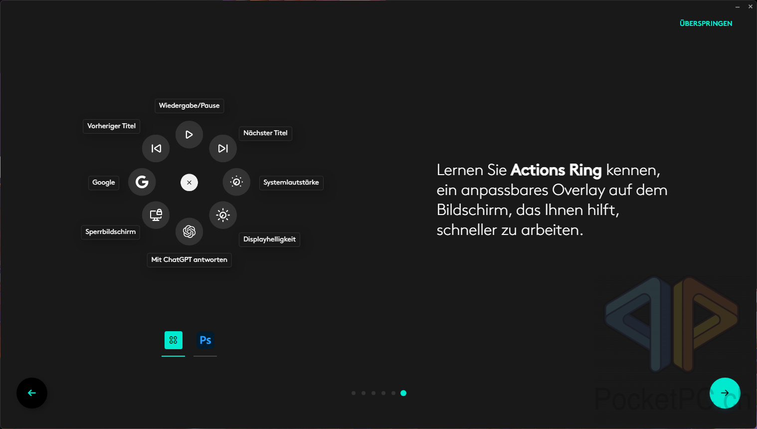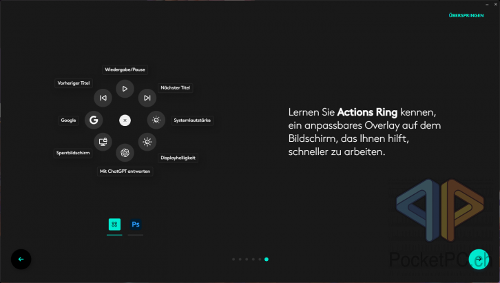 Beispielsweise habe ich einen Action Ring mit einer Schaltfläche so programmiert, dass die wichtigsten Programme und Webseiten für den Arbeitstag direkt verfügbar sind. Eine Taste darin öffnet PocketPC.ch und in einem weiteren Tab direkt das Backend zum Schreiben von Artikeln.