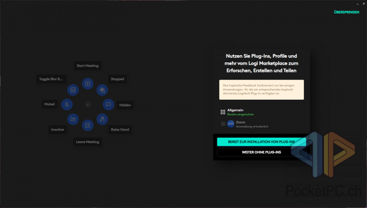 Die App von Logitech enthält Plugins für viele Apps von Drittanbietern. Affinity Photo verfügt über eine Version des Action Rings, die angezeigt wird, wenn ich während der Verwendung der App auf das Haptic Sense Panel drücke. Auch Zoom oder die Adobe Creative Suite sind mit an Bord. Logitech Options+ zeigt einige Befehle an, die ich wahrscheinlich nutzen könnte, von sehr spezifischen bis zu alltäglichen. Aber ich kann immer alles anpassen und so einstellen, wie ich es gerne hätte.