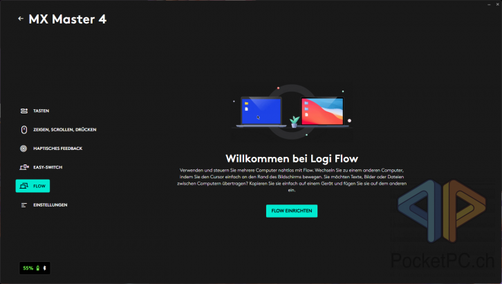 Zur Verbindung dient, wie bereits erwähnt, Bluetoot 5.1 LE mit einer Reichweite von bis zu 10 Metern und neu auch Funktion namens Log Flow. Mit Logi Flow kann nahtlos zwischen mehreren Computern gewechselt werden, so dass man die Maus nicht erneut koppeln oder verbinden muss. Alternativ zur Kommunikations per BTLE kann die Logitech MX Master 4 auch per Logi Bolt USB-Empfänger genutzt werden. Wer keinen USB-C-Anschluss mehr frei hat oder diese zu nah beieinander verbaut vorfindet (danke für nichts, Lenovo), kann aber auch einen handelsüblichen USB-A-Adapter benutzen mit dem Logi Bolt Kleingerätchen.