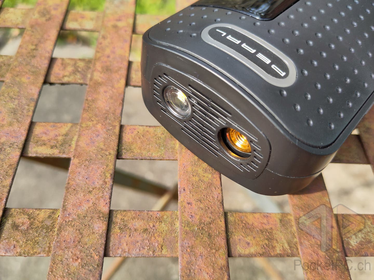 Um den Herstellernamen PEARL ist eine RGB-Statusanzeige verbaut. Diese leuchtet in den unterschiedlichen Modi in verschiedenen Farben, um den gemessenen Luftdruck zu signalisieren.
