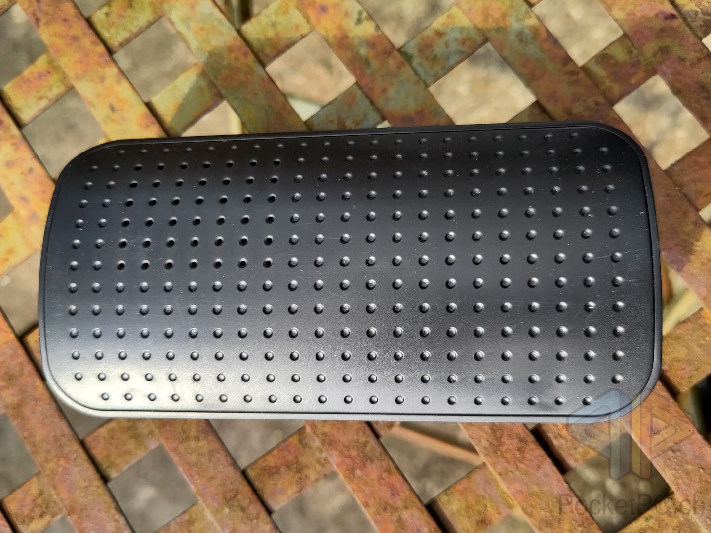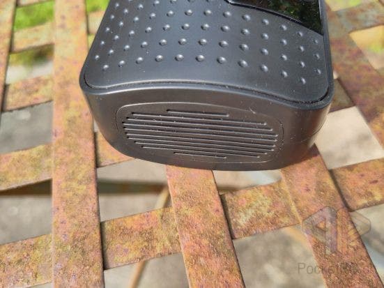Auf der Unterseite ist der Lufteinlass, während rechtsseitig der USB-C-Anschluss zum Aufladen des Akkus verbaut ist. Links ist das Typenschild aufgeklebt.