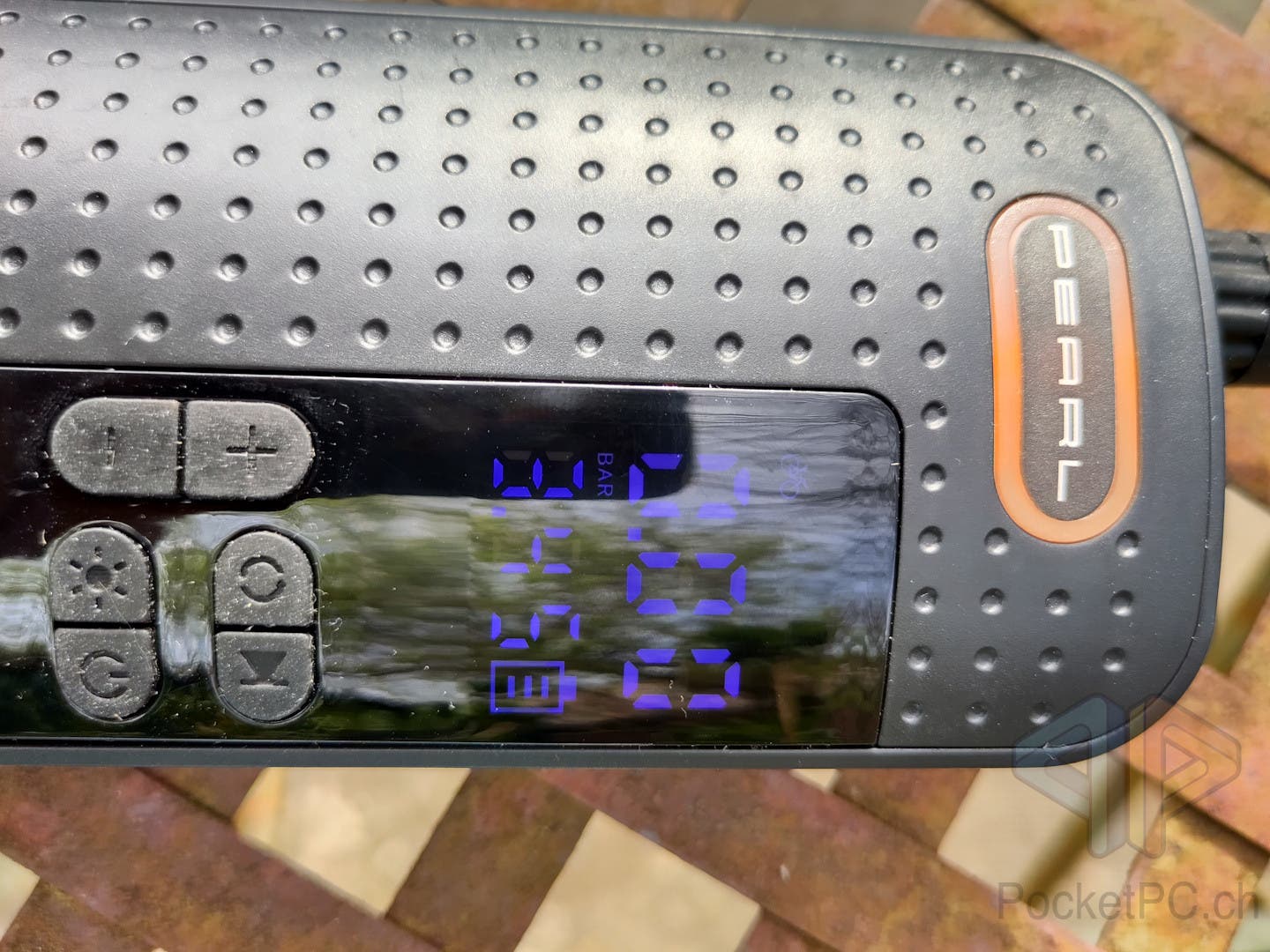 Die PEARL AGT Akku-Kompressor-Luftpumpe ALP-115 macht einen soliden und durchdachten Eindruck. Keine Teile wackeln oder knarzen. Die Gummitasten sind gut bedienbar und auch die LED-Anzeige ist gross genug und gut lesbar, selbst im gleissenden Sonnenlicht.