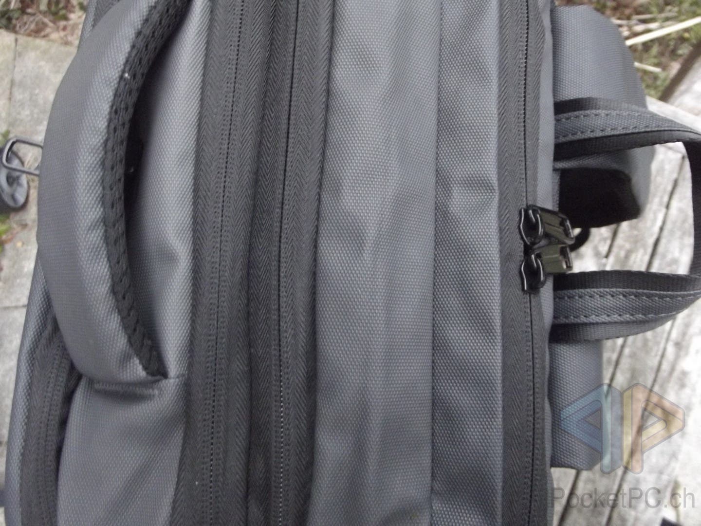 Der Handgepäck-Rucksack von Xcase überzeugt durch seine gute Verarbeitung. Sämtliche Nähte sind präzise und stabil gesetzt. Die Reissverschlüsse wirken langlebig und robust, wobei zusätzlich angebrachte Schlaufen das Öffnen und Schliessen erleichtern könnten. Aber diese kann man bei Bedarf einfach nachrüsten, um etwa auch mit Handschuhen ist der Zugriff auf die Zipper zu erleichtern.