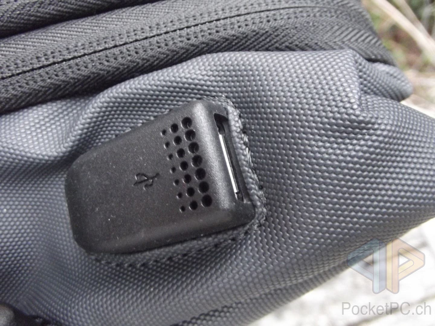 Ebenfalls praktisch ist der USB-Anshluss, so dass die Powerbank bequem im Rucksack verbleiben kann, während man das Handy einfach an der USB-Aussensteckdose anschliesst. Die klar strukturierten Fächer des wasserabweisenden Rucksacks sind ebenfalls durchdacht gestaltet. Das Aussenfach sowie die das Fach auf der Rückseite für das Portemonnaie oder Handy sorgen dafür, dass alle mitgeführten Gegenstände ordentlich und griffbereit verstaut werden können.