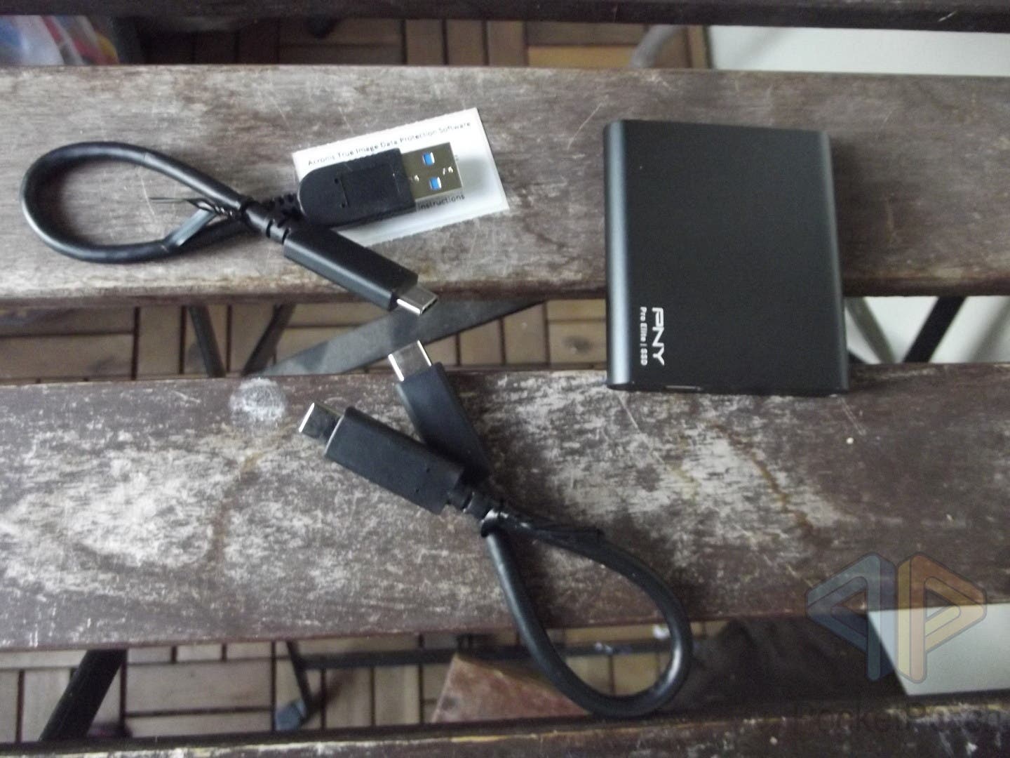 Geliefert wird die PNY Pro Elite Portable SSD mit zwei Kabeln: Ein USB-C-zu-USB-C sowie ein USB-A-zu-USB-C, welche beide nur 20 cm kurz sind. Sie sind beide schwarz, vergleichsweise kräftig und steig und haben ebenso lange Steckerlitzen, was das Risiko eines Kabelbruchs verringert. Zudem ist ein Sticker mit der Lizenz zu Acronis True Image Backup im Wert von ca. 50 Euro bzw. SFr. mit im Päckchen.