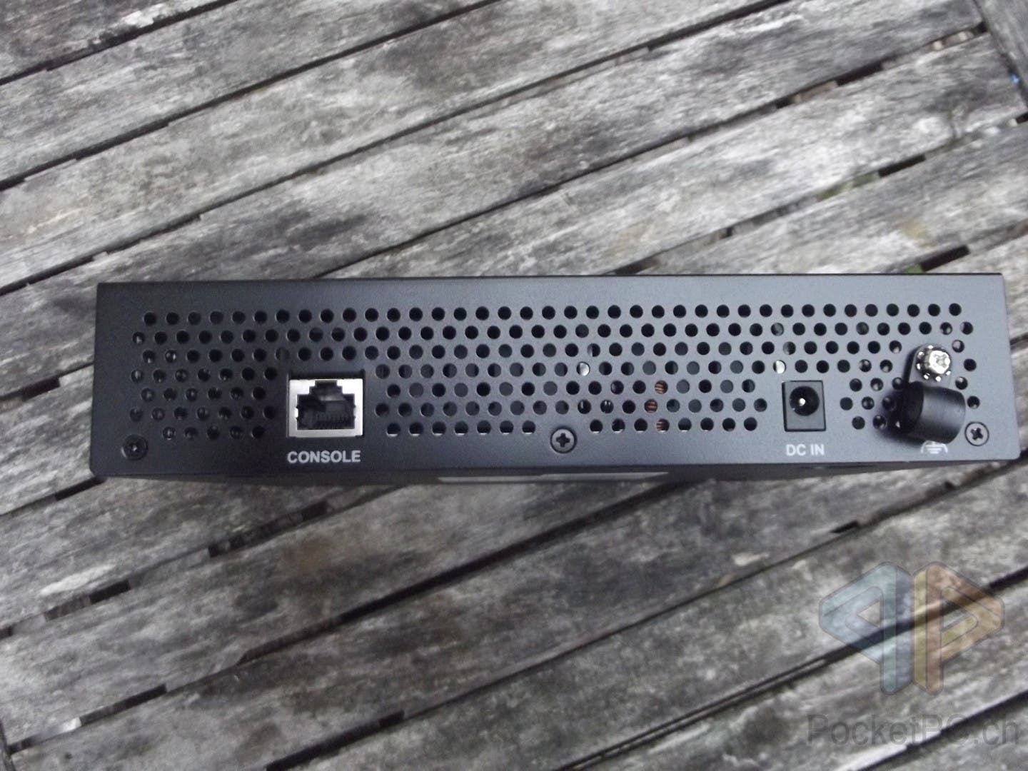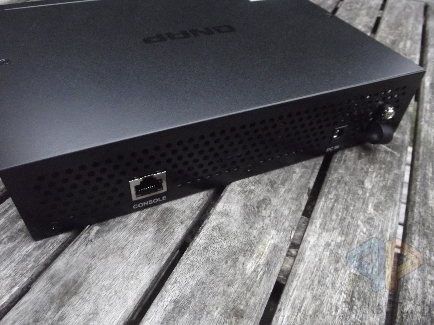 Der QSW-L3205-1C4T von QNAP macht einen sehr robusten und hochwertigen Eindruck. Das liegt auch an dem ordentlichen Eigengewicht von 1700 Gramm. Die übliche Gehäusegestaltung mit Lüftungsöffnungen und Gewinden für Rackmount und Wandmontage zeigen, dass man sich bei QNAP Gedanken gemacht hat, wie Netzwerk-Admins ihre Hardware unterbringen könnten. Wie üblich ist auch die Konsole hinten verkabelt, um Verwechslungen besser vermeiden zu können.