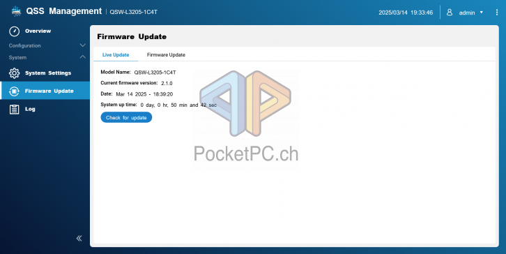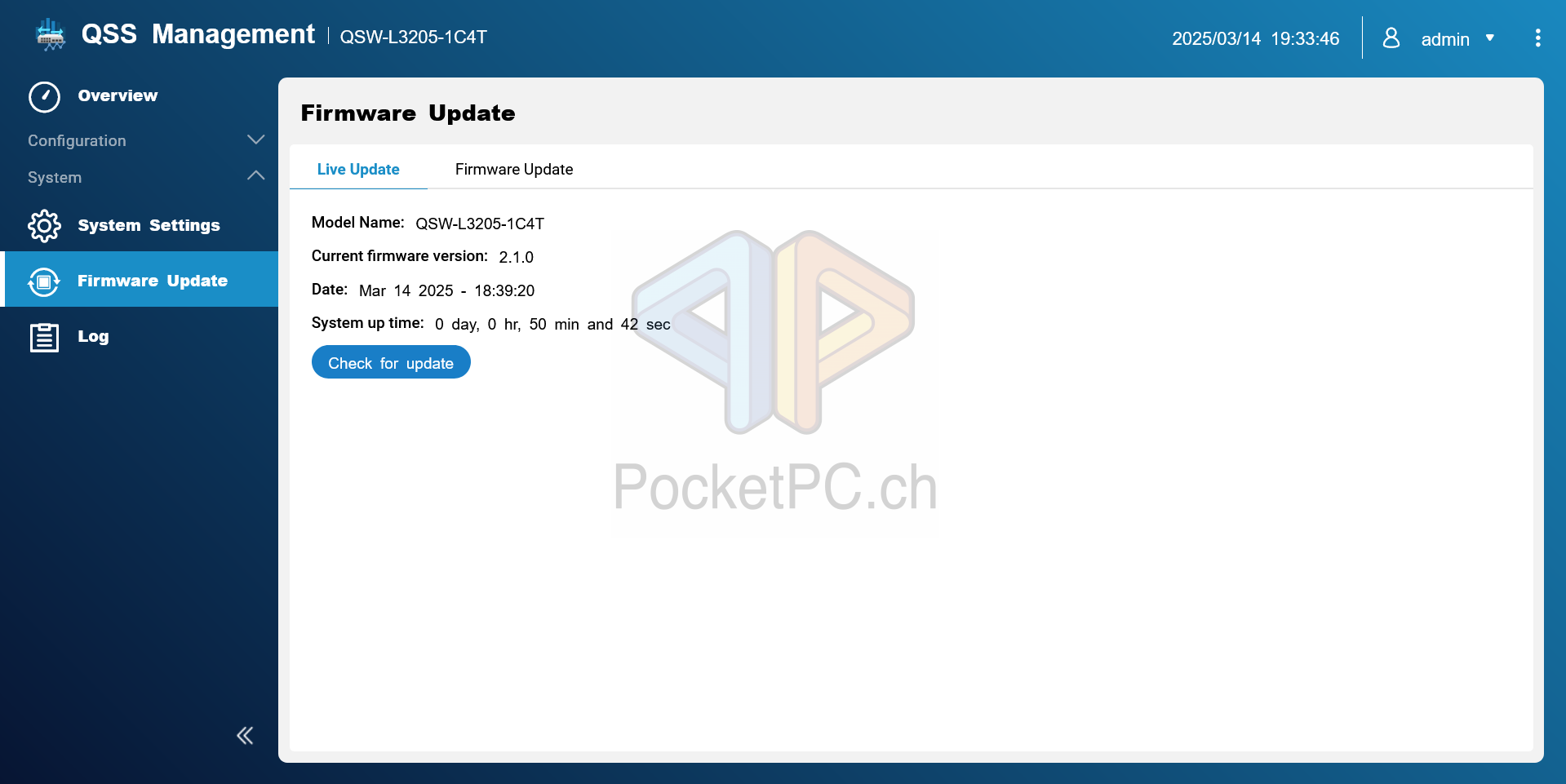 Danach wird das Standardpasswort vom Sticker auf der Unterseite des QNAP QSW-L3205-1C4T benötigt. Da der Username immer “admin” lautet und auch nicht geändert werden kann, ist dieser eigentlich unnötigerweise auch auf der Unterseite angebracht. Jedenfalls zwingt das Gerät uns nach dem ersten Login direkt, das Standardpasswort zu ändern. Es sind jedoch keinerlei Sicherheitsüberprüfungen eingebaut und auch unsichere Passwörter wie einfache Zahlenfolgen werden anstandslos akzeptiert.