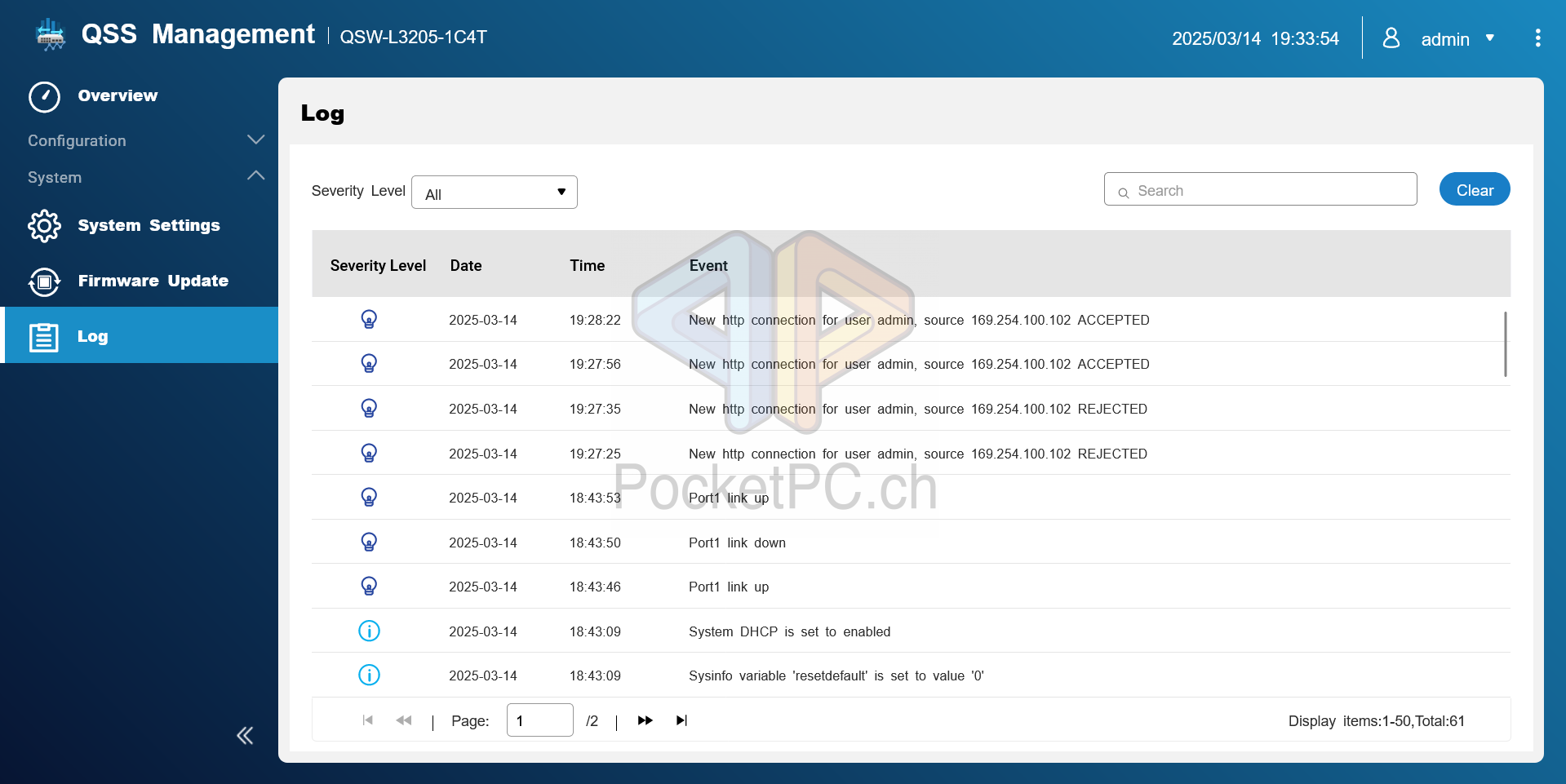 Insgesamt funktioniert das alles tadellos und sehr zufriedenstellend, was der QNAP Ethernet Switch QSW-L3205-1C4T bietet. Auch wenn QNAP das die Management-Ausstattung als lite bezeichnet, kann man sich beim QNAP QSW-L3205-1C4T eigentlich nicht beschweren. Für kleine und mittlere Netzwerke ist der 10GbE Ethernet-Switch sehr gut ausgelegt und bietet die wichtigsten Funktionen an, von VLAN bis LACP und IGMP Snooping sind viele nützliche Features an Bord. Dass nur ein SFP+ Port vorhanden ist, reicht für die meisten Anwendungsfälle vermutlich aus, da dank 10 Gigabit-Ethernet über Cat 7e-Kupferkabel kaum alle Geräte mit Fiberoptik angeschlossen sein werden. Die Wärmeentwicklung des 1Full 10GbE-Ethernet Switchs von QNAP ist auch unter Vollast übrigens kaum nennenswert. Der Stromverbrauch mit knapp über 32 Watt im Bereich des Üblichen für derartige Geräte. Die serielle Konsole haben wir kurz ausprobiert und können sagen, dass auch diese, einen entsprechenden Adapter vorausgesetzt, funktioniert. Spass macht das allerdings nicht so sehr. Die Einrichtung per Browser ist da deutlich intuitiver. Aber wer viele Switches vielleicht scriptbasiert überwachen will, kann damit durchaus auch arbeiten.